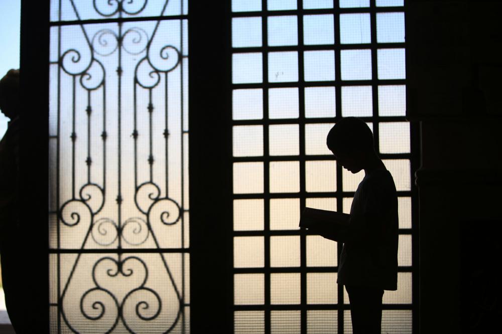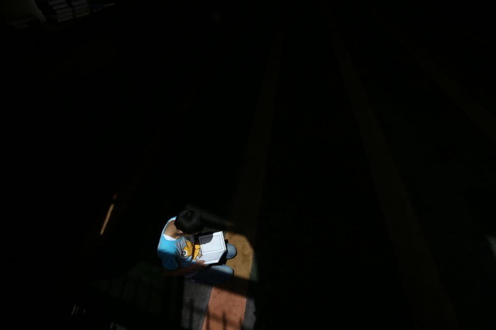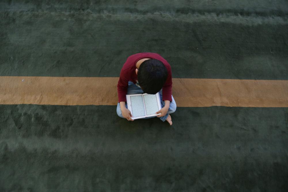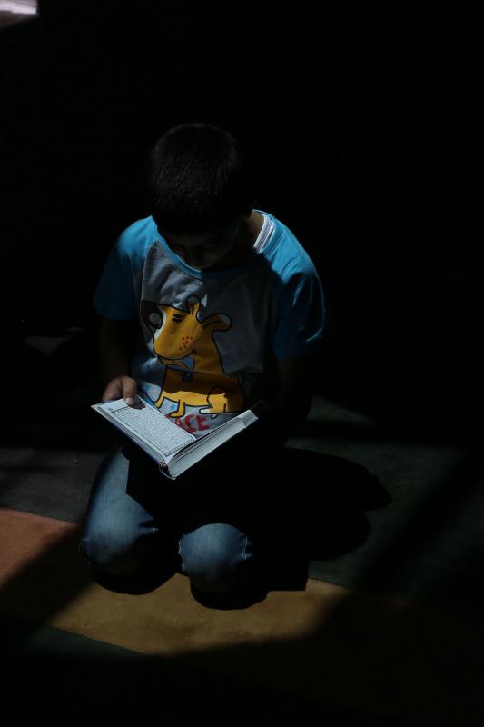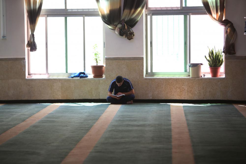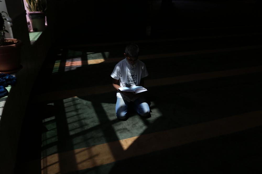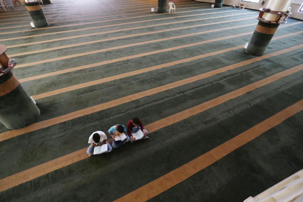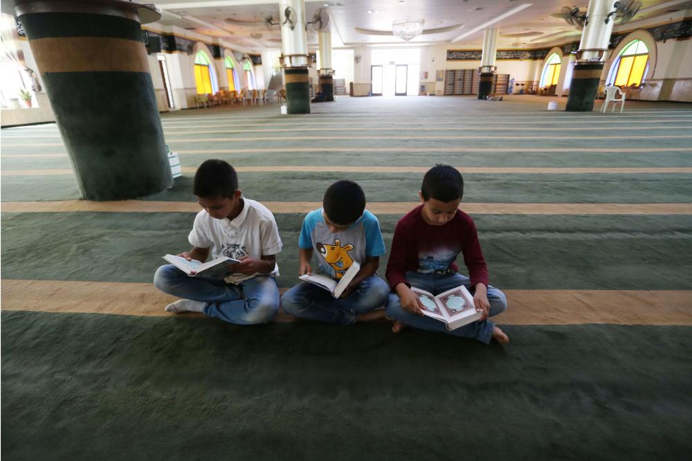 اطفال يقرأون القران في مسجد تميم الداري في رام الله