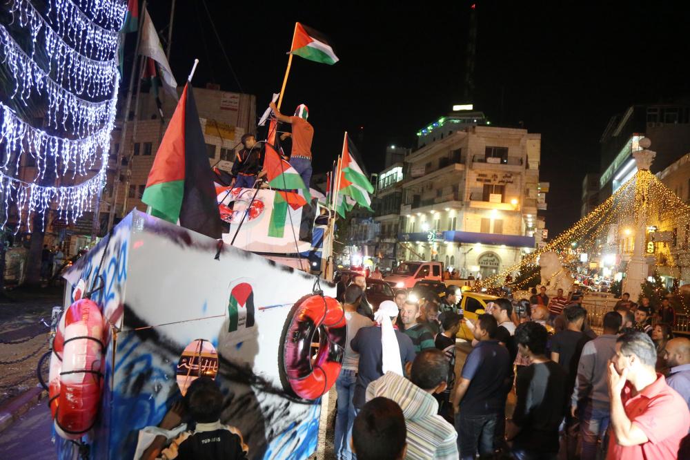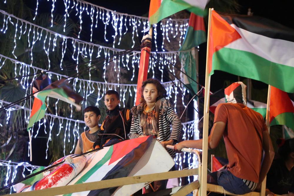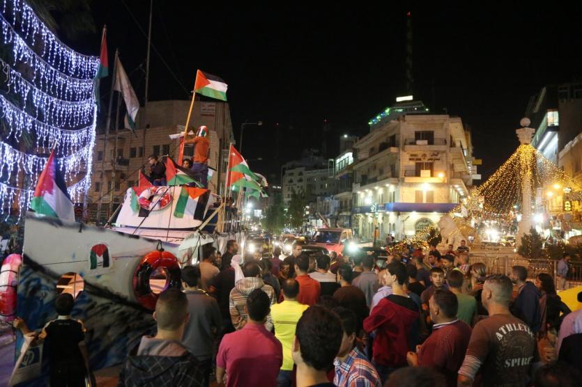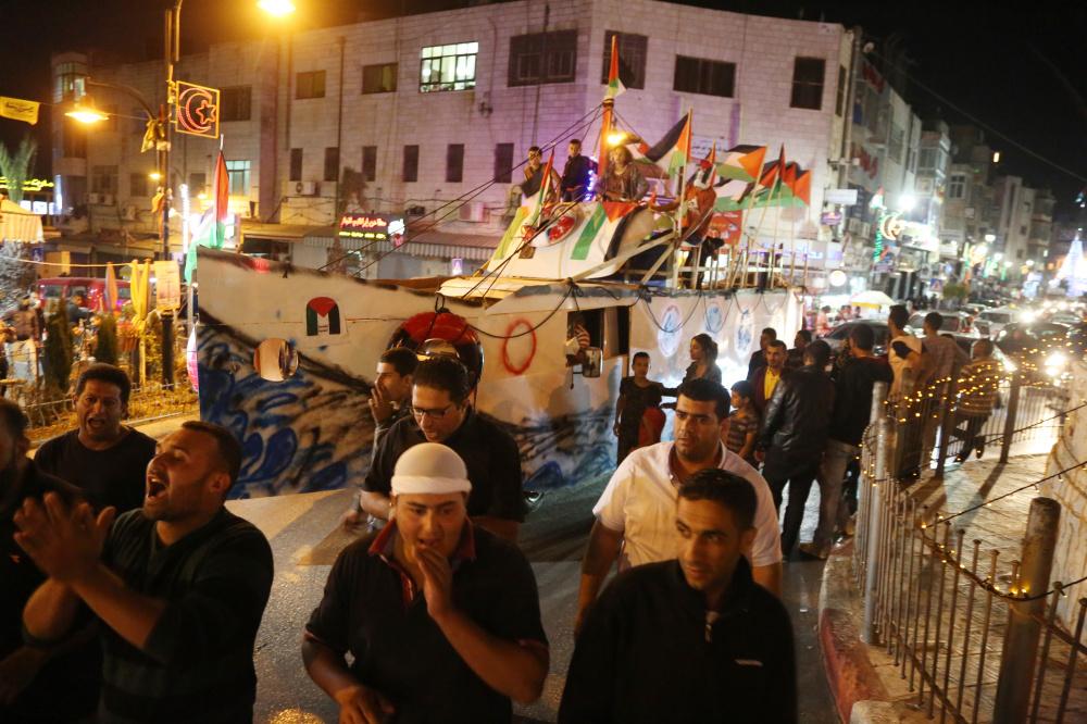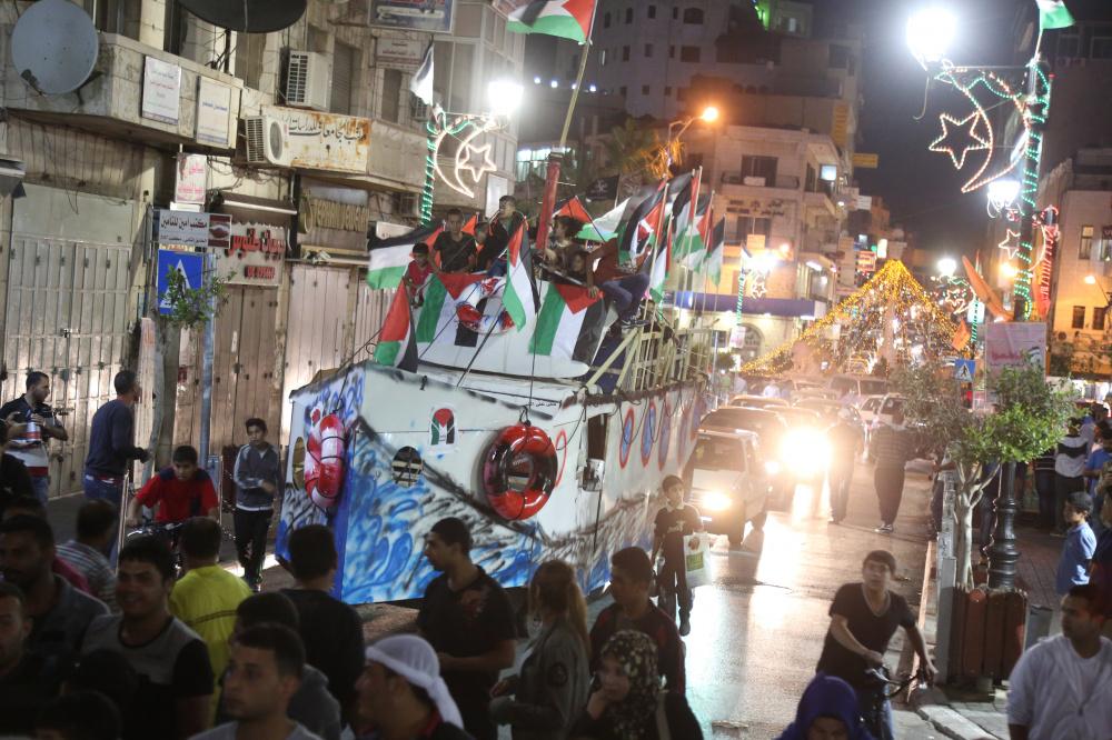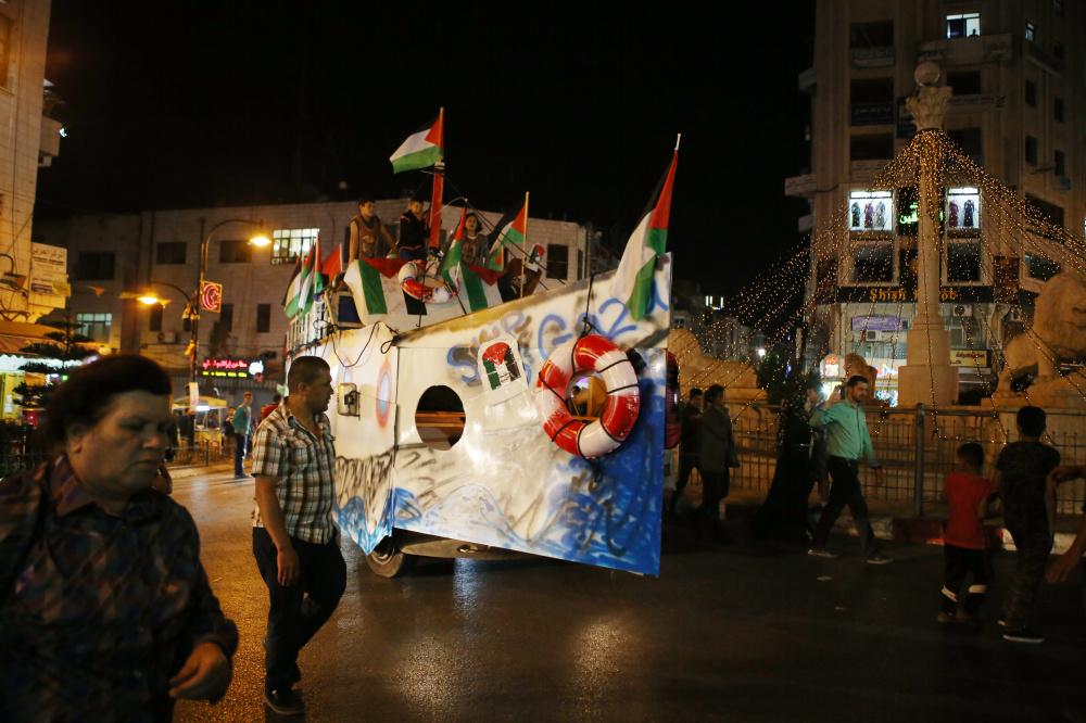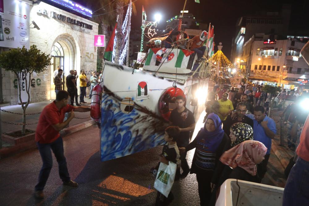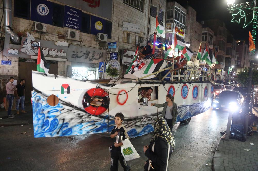 مجسم لسفينة أسطول الحرية يجوب شوارع رام الله