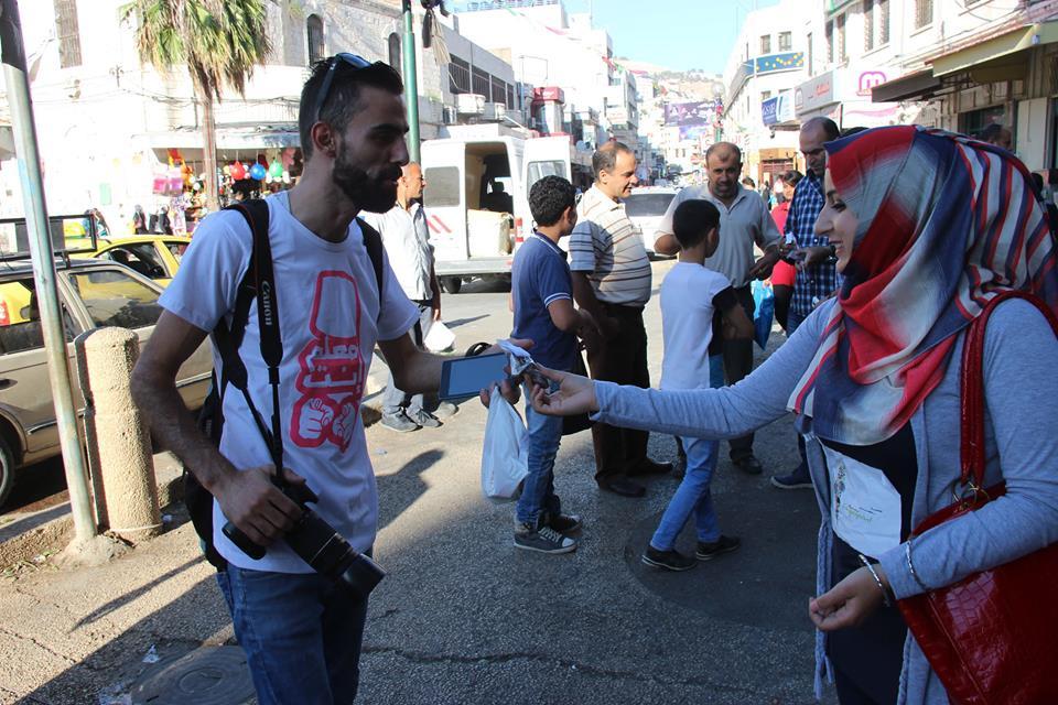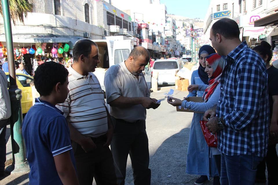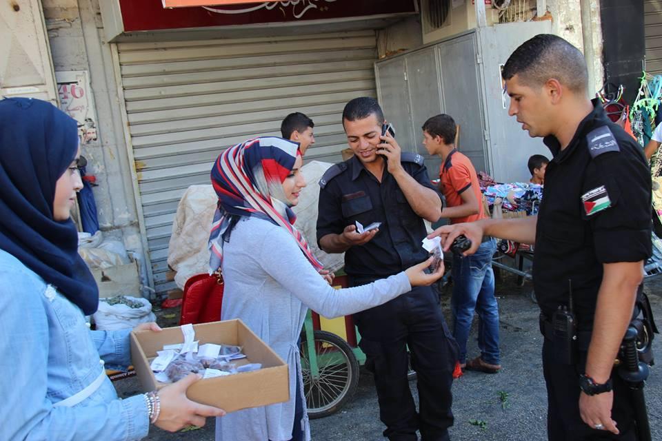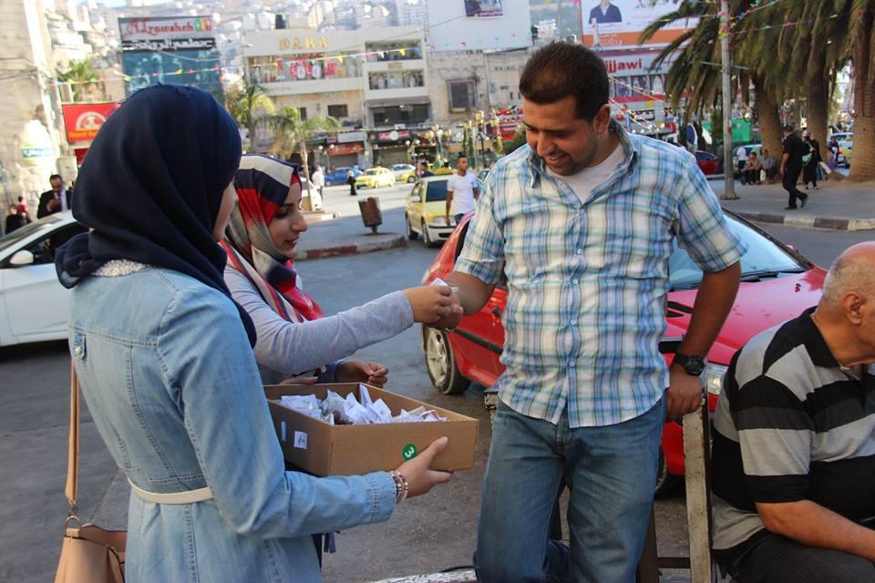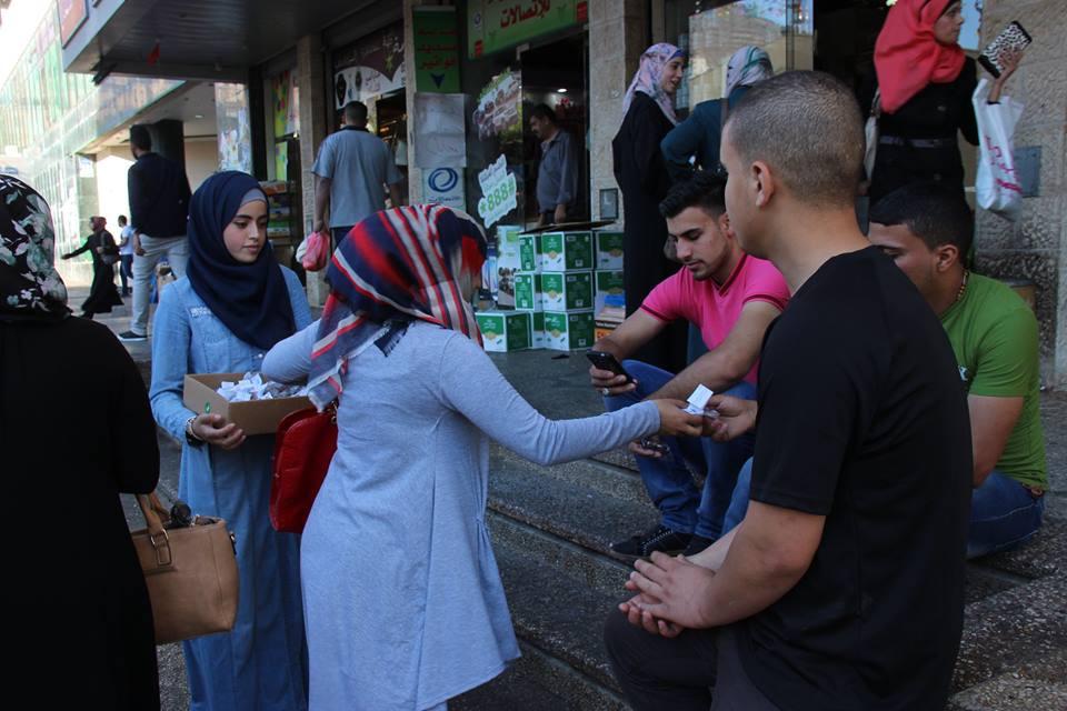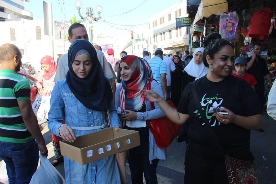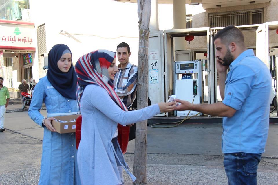 متطوعو مشروع "بصمة" يوزعون التمر على المواطنين