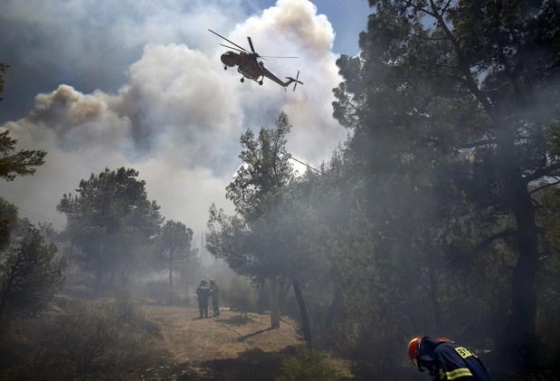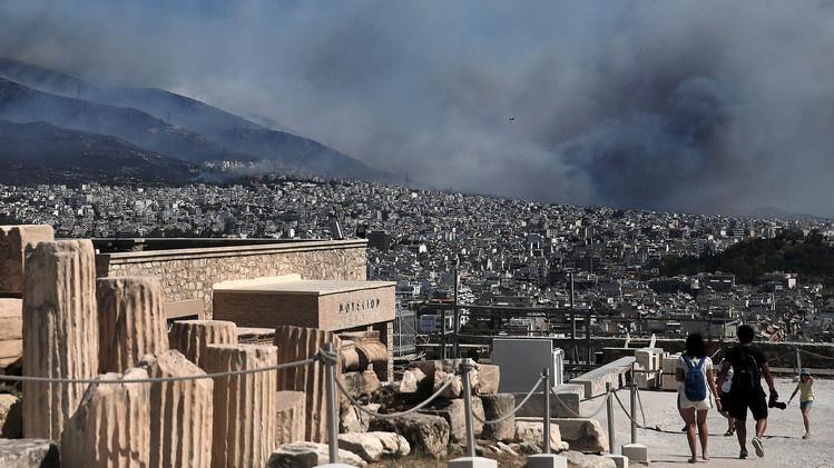 وكالات- أجبرت حرائق الغابات التي اندلعت جنوب اليونان يوم الجمعة 17 تموز السكان على الفرار من منازلهم.