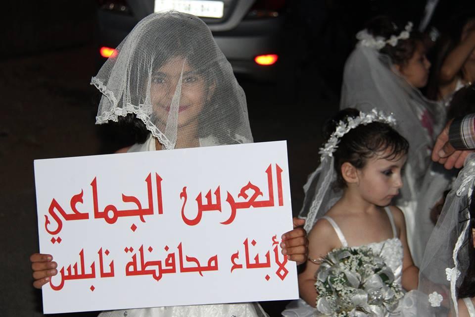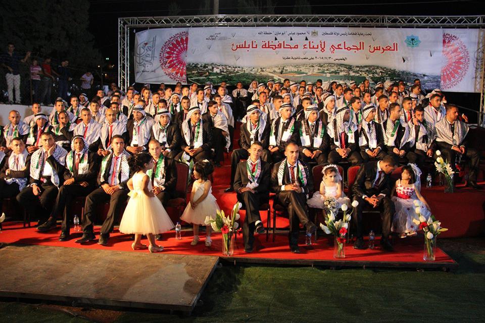 العرس الجماعي لـ240 عريس وعروس الذي نُظم في بلدة عقربا جنوب شرق نابلس