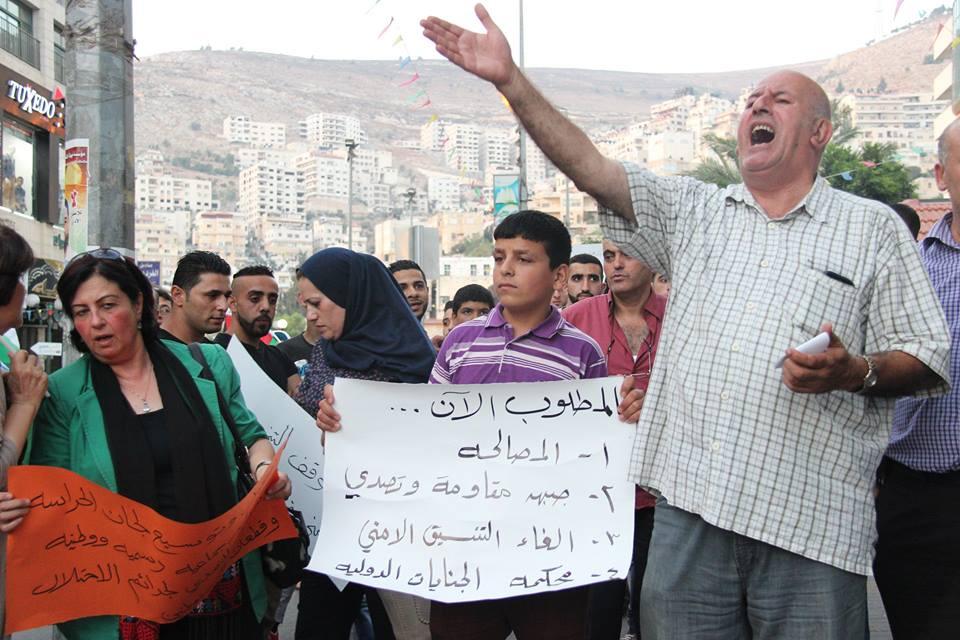 نابلس: وقفة احتجاجية ضد مجزرة وجريمة إحراق المستوطنين لعائلة الدوابشة
