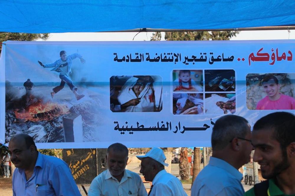 غزة - راية عدسة: سامح أبو دية أقامت القوى الوطنية والاسلامية في قطاع غزة خيمة عزاء رمزية لشهيد محرقة دوما الرضيع "علي الدوابشة" في ساحة الجندي المجهول وسط مدينة غزة، بحضور شخصيات اعتبارية وممثلين عن الفصائل الوطنية.