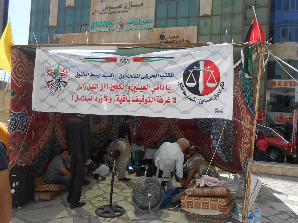 الخليل: خيمة اعتصام المكتب الحركي للمحامين تضامنا مع الأسير علان
