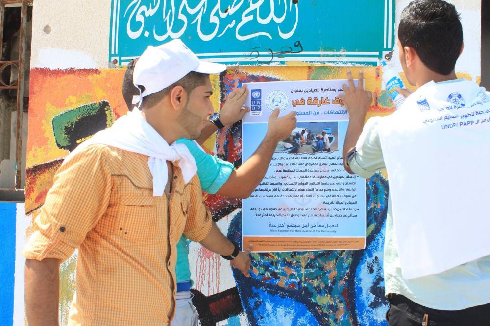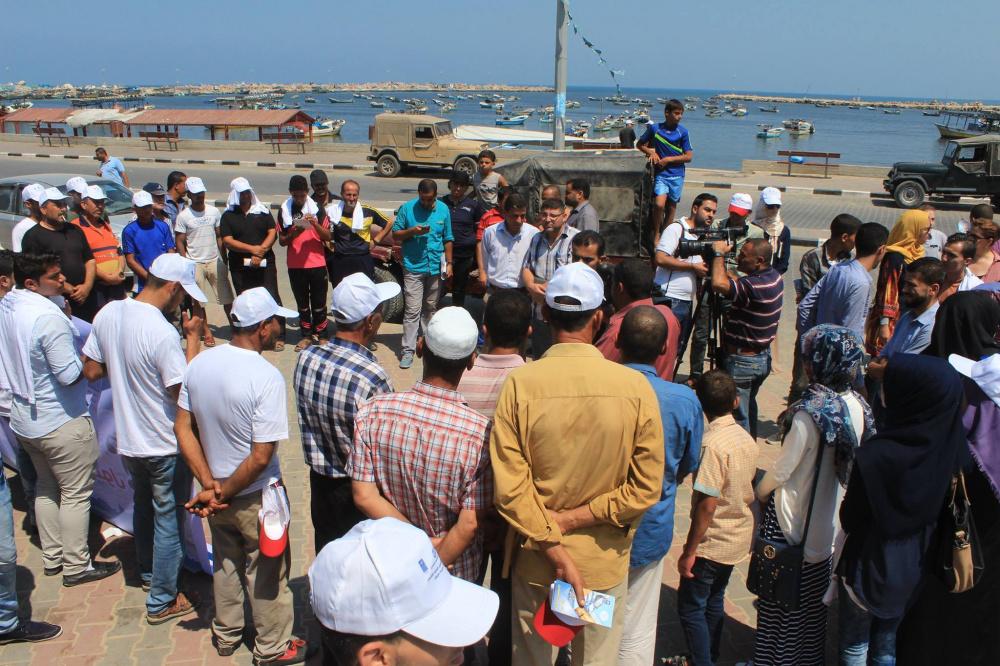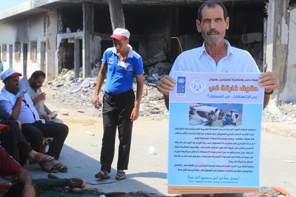 أطلق شبان ونشطاء وحقوقيين في غزة اليوم الخميس امام نقابة الصيادين بميناء غزة البحري، حملة بعنوان "حقوق غارقة في بحر الانتهاكات.. من المسؤول؟"، بتمويل من برنامج الأمم المتحدة الانمائي، بهدف دعم ومناصرة الصيادين الفلسطينيين الذين بتعرضون لانتهاكات متواصلة من قبل الاحتلال والتركيز على تطبيق العدالة في توزيع المساعدات من نقابتهم بغزة.