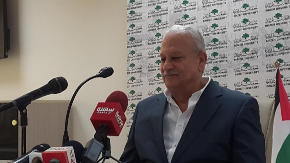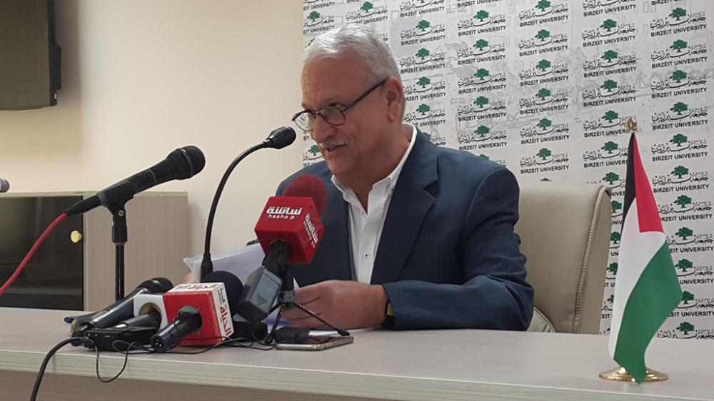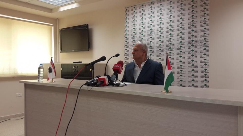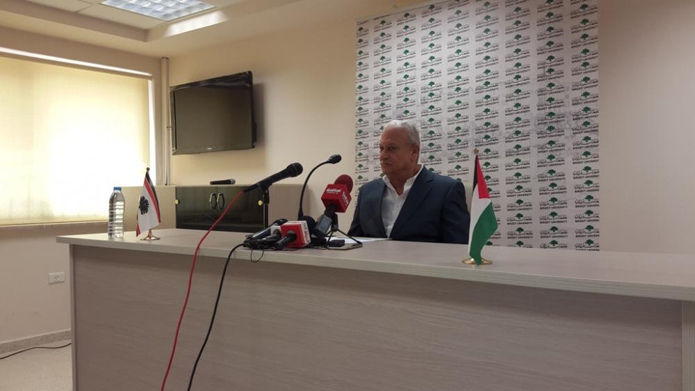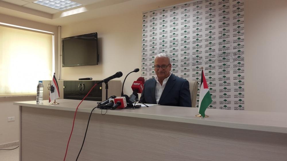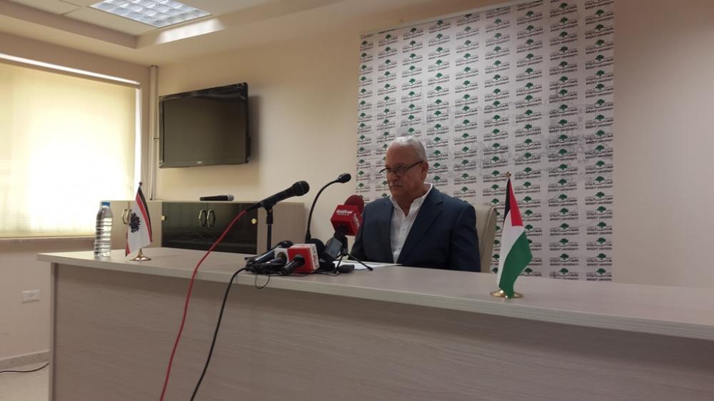رئيس جامعة بيرزيت يعقد مؤتمرا صحفيا في الجامعة