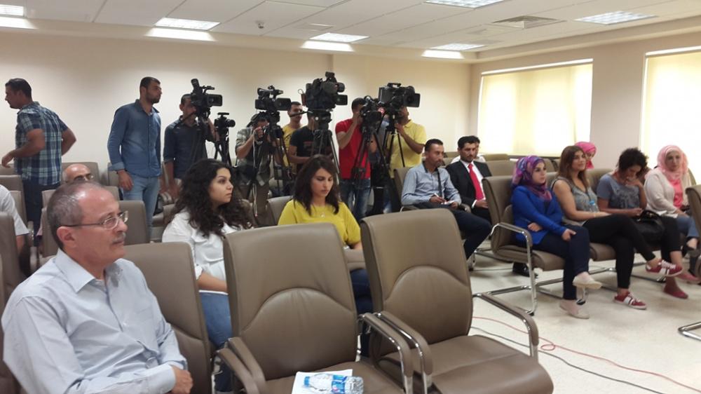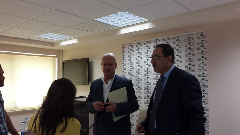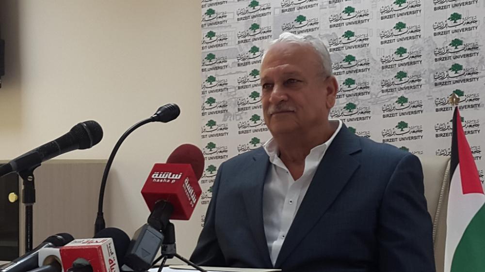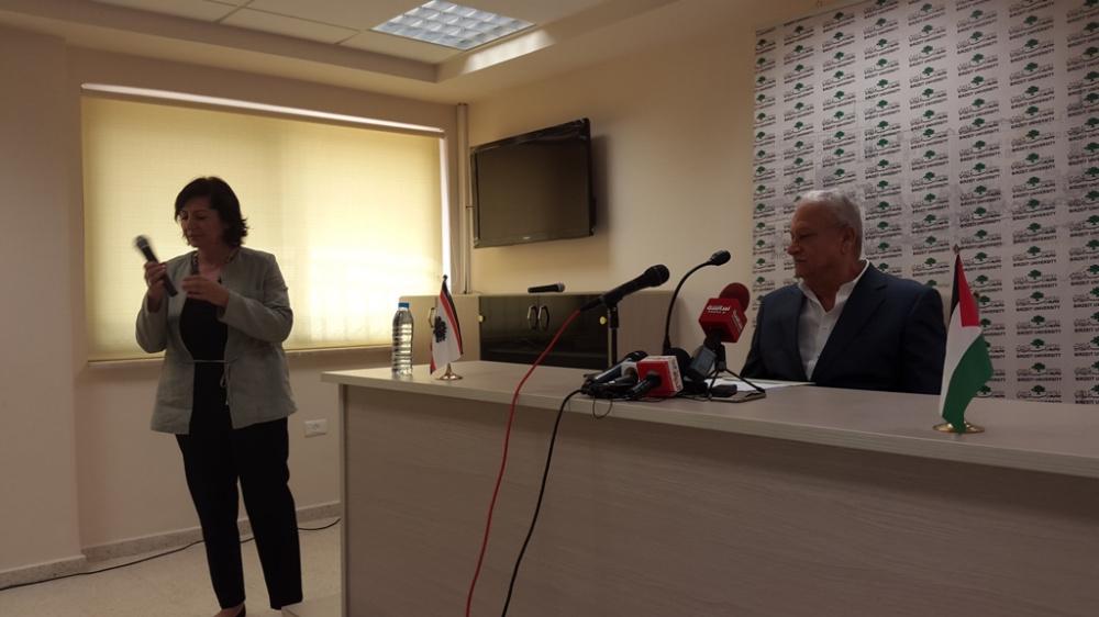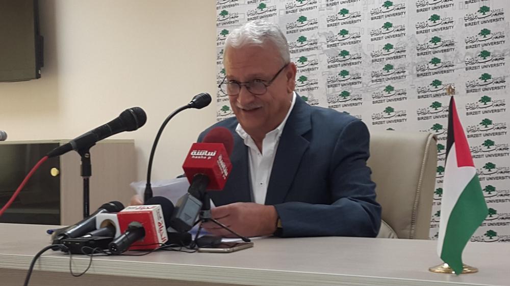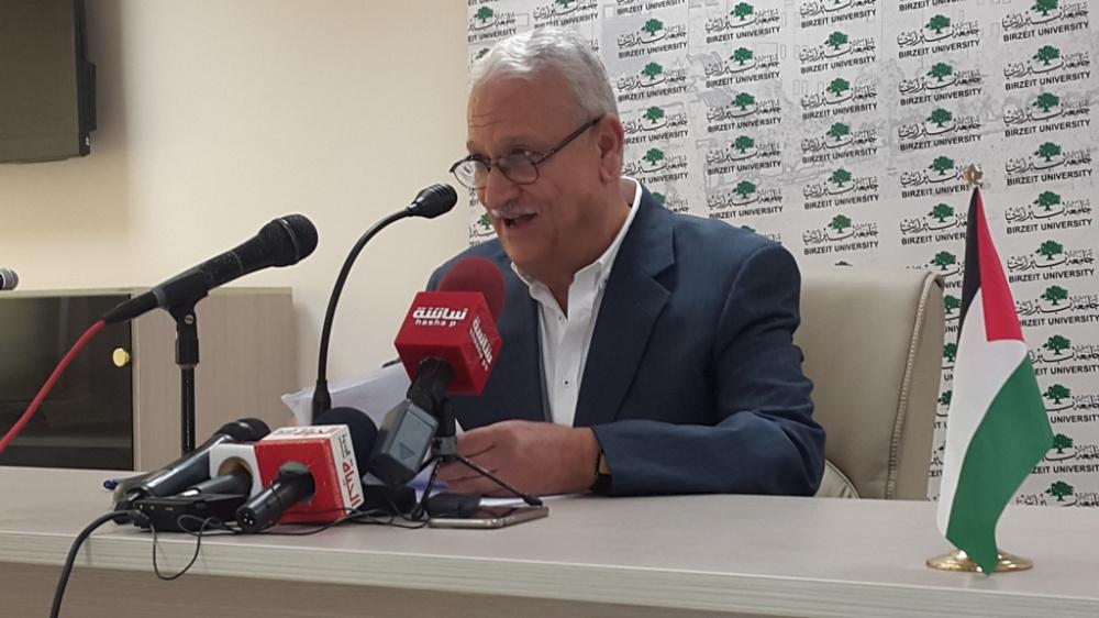رئيس جامعة بيرزيت يعقد مؤتمرا صحفيا في الجامعة