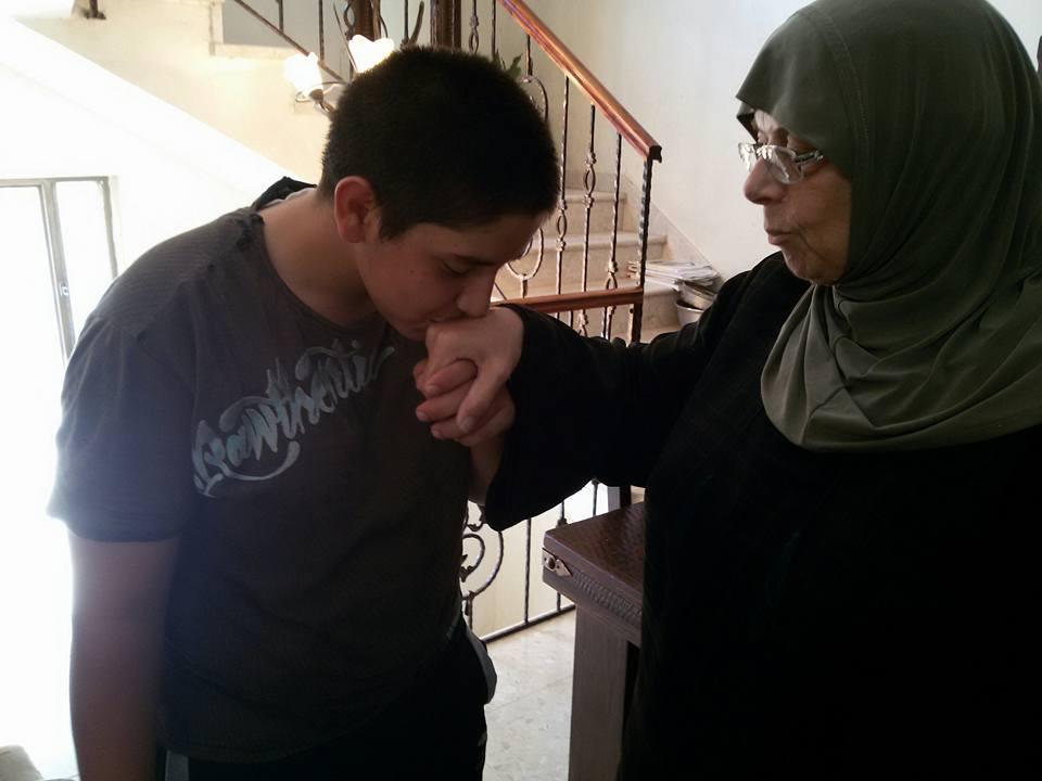 عبد الناصر يودع والدته لحظة طلب استدعاء الى مسكوبيه الاحتلال في القدس المحتله