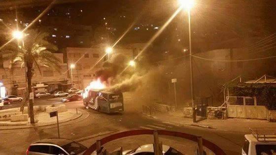 احتراق حافلة اسرائيلية في القدس المحتلة