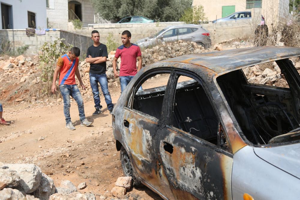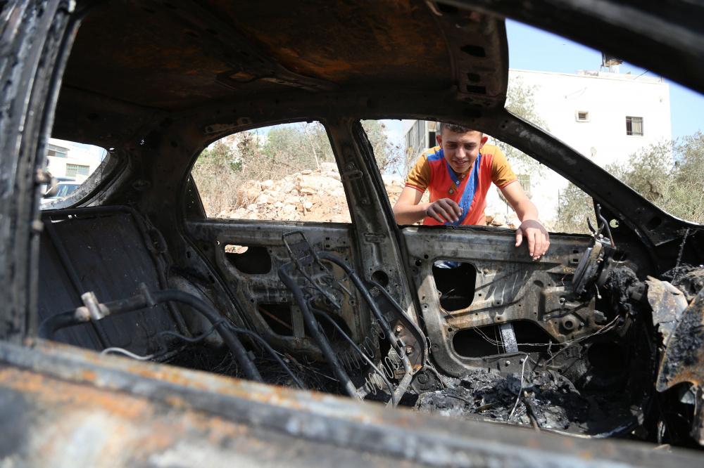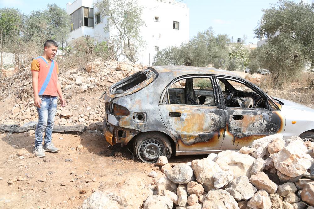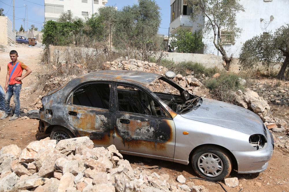 مستوطنون يحرقون سيارة فلسطينية في بيتللو قرب رام الله