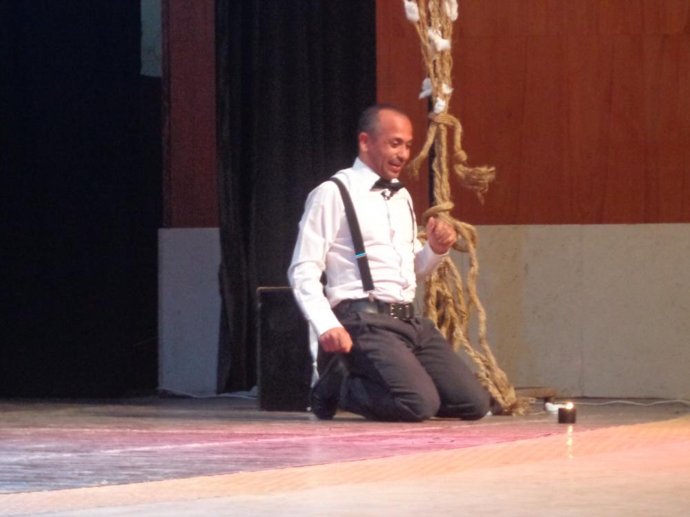 والغريب في هذه المسرحية ان صاحبها هو الممثل الوحيد فيها.