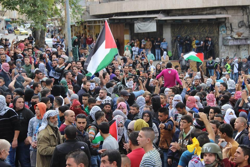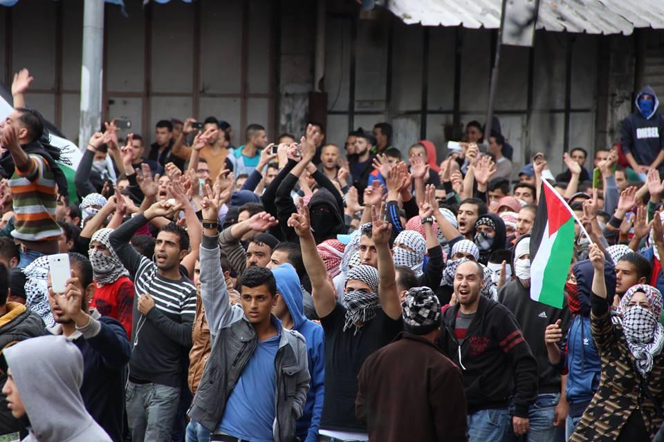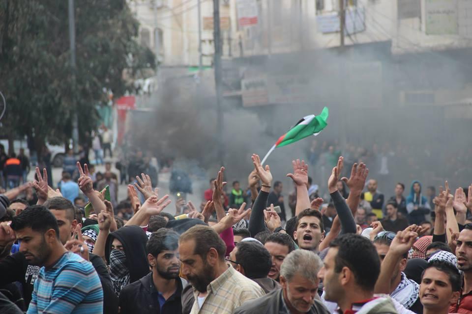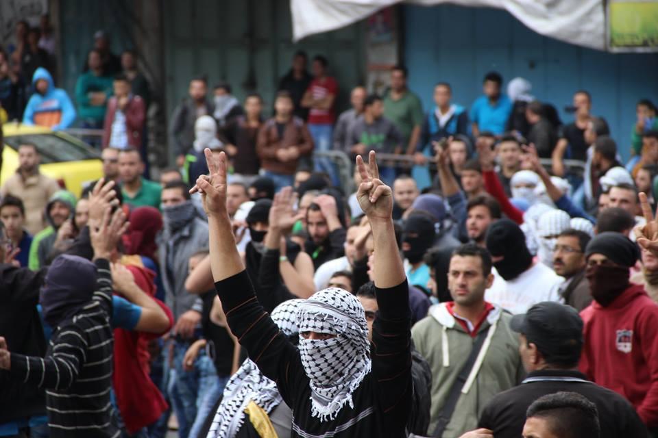 المظاهرة السلمية التي قمعها جيش الاحتلال على مدخل شارع الشهداء بالخليل