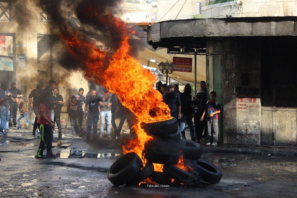 المواجهات المندلعة في باب الزاوية عقب اعدام شابين في الخليل