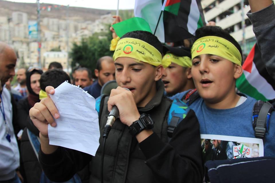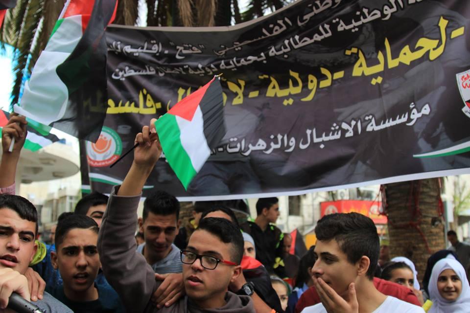حركة فتح في نابلس تنظم وقفة تضامنية للمطالبة بحماية دولية لأطفال فلسطين