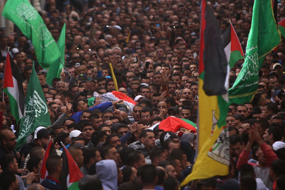 تشييع جثماني الشهيدين ليث اشرف مناصرة وأحمد أبو العيش (28) ع في مخيم قلنديا