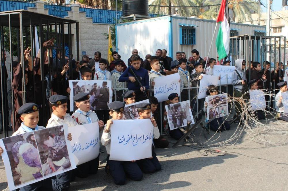 اطفال بغزة يتضامنون مع الأسرى الأطفال بسجون الاحتلال