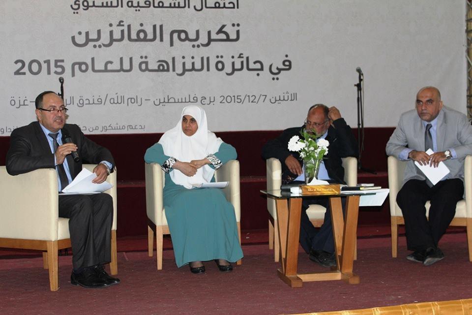 غزة: حفل تكريم الفائزين بجائزة النزاهة لعام 2015
