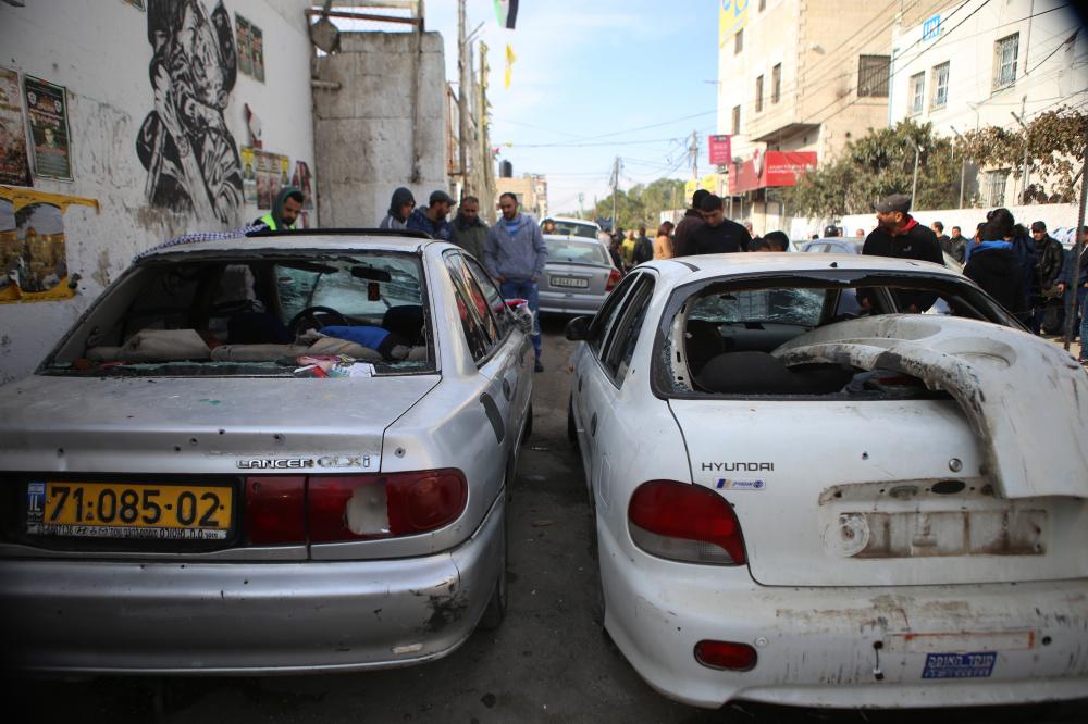 صور للسيارتين اللتين كان يستقلهما الشهيدان احمد جحاجحة وحكمت حمدان في مخيم قلنديا قبل اطلاق الرصاص عليهما ما ادى الى استشهادهما واصابة شاب ثالث كان مع احدهما...تظهر الصور تعرض احدى السيارتين لاكثر من 20 رصاصة في الواجهة الامامية.
