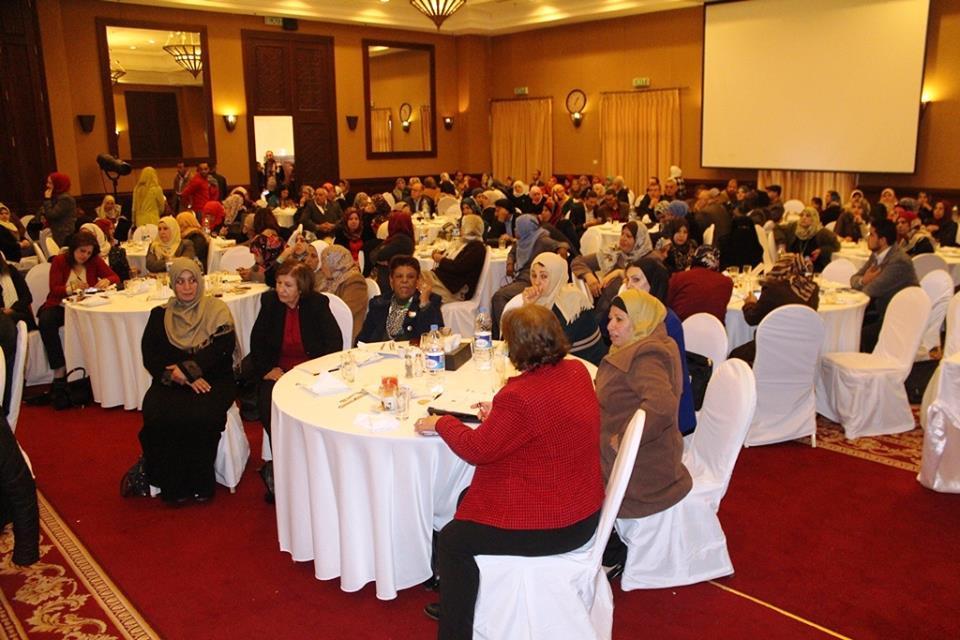 عقد الاتحاد العام للمرأة الفلسطينية ومركز الأبحاث والاستشارات القانونية للمرأة ومركز شؤون المرأة اليوم الاثنين، المؤتمر الأول من نوعه تحت عنوان" نساء فلسطين يدا بيد في مواجهة العنف"، بدعم من الأمم المتحدة والحكومة اليابانية، وحضر المؤتمر وفد كبير من نساء الضفة الغربية ضم قرابة 55 امرأة.