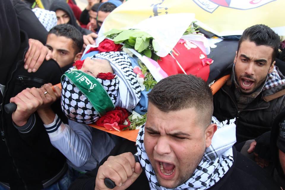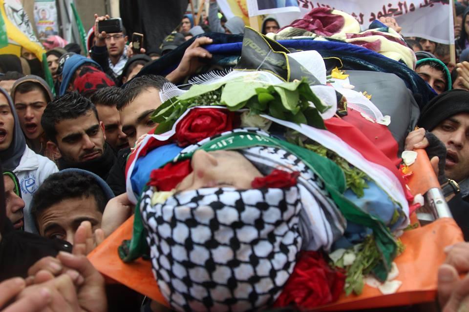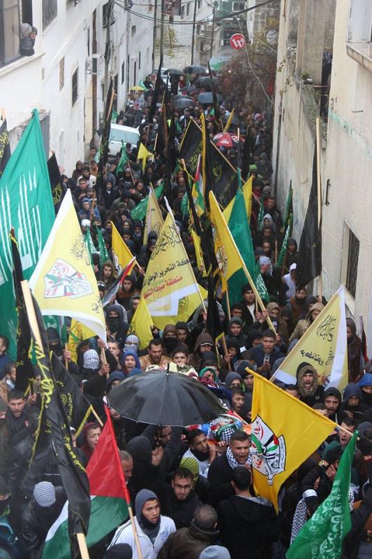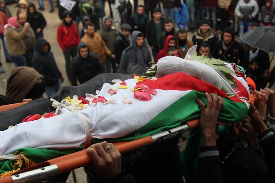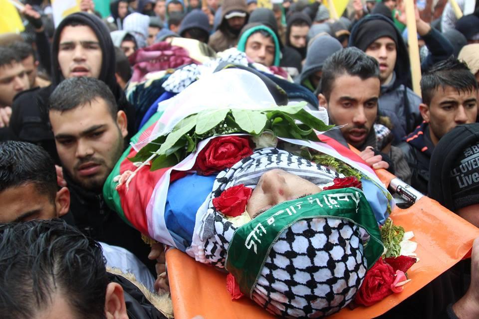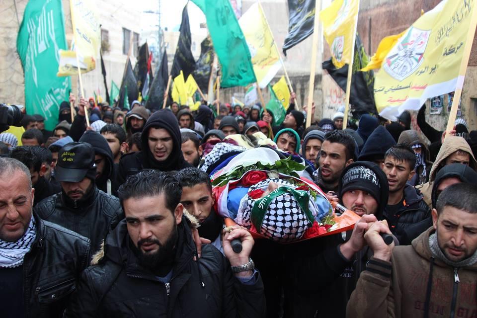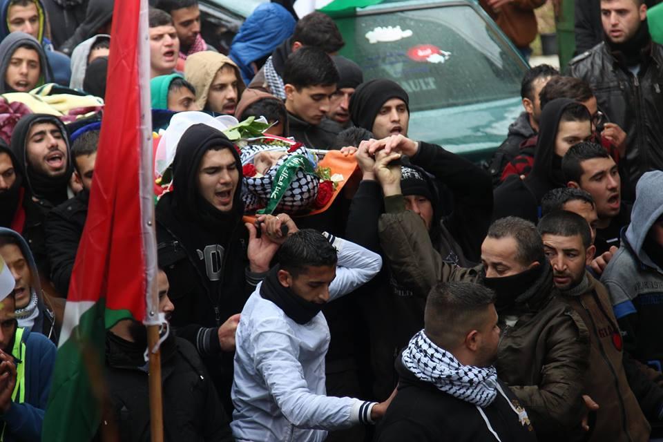 تشييع جثمان الشهيد عز الدين رداد في قرية صيدا بمدينة طولكرم