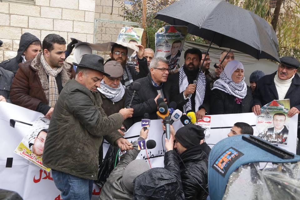صور: وقفة تضامنية مع الاسير محمد القيق امام مقر الصليب الاحمر برام الله