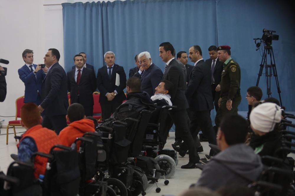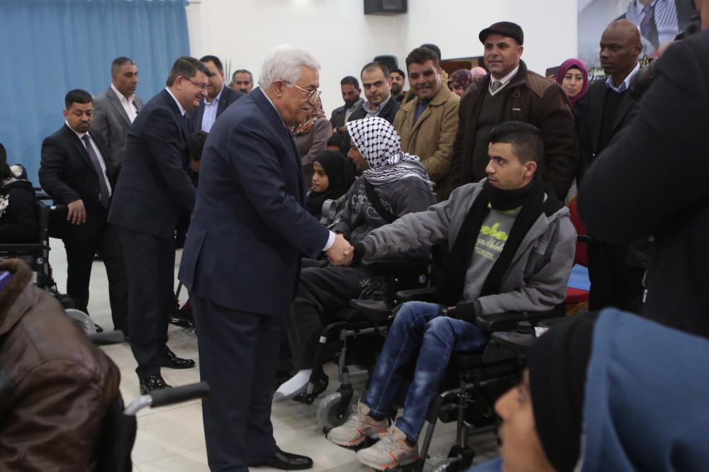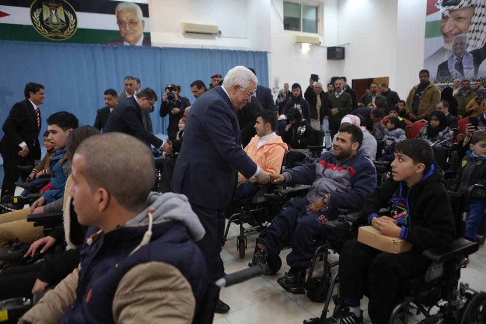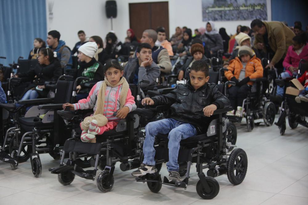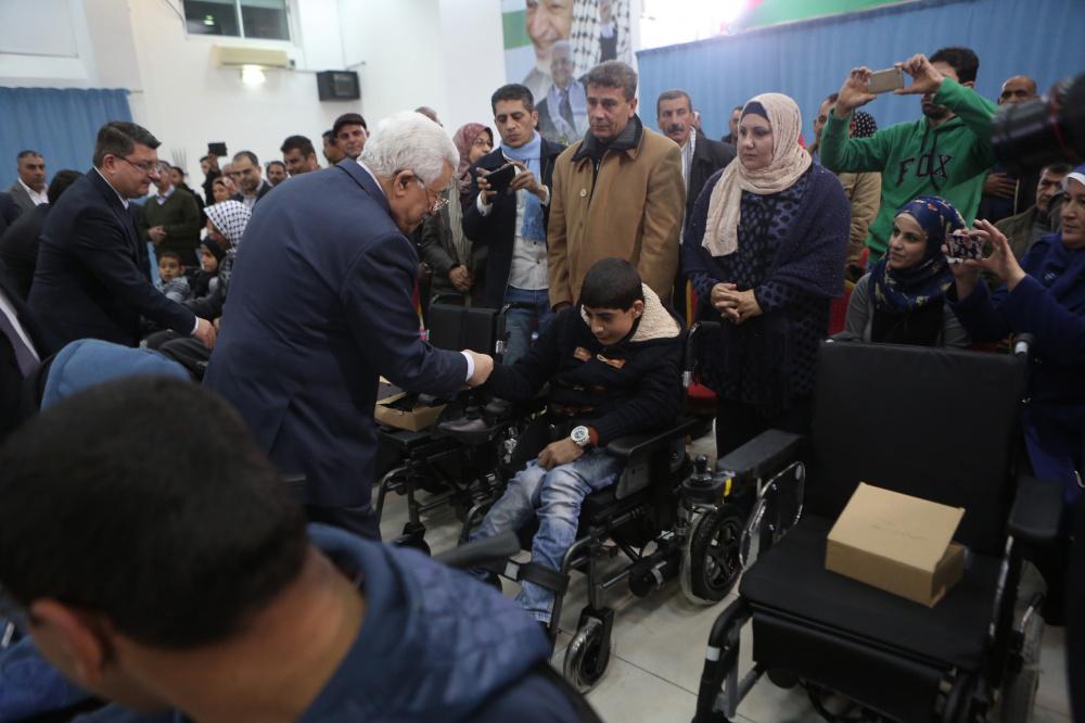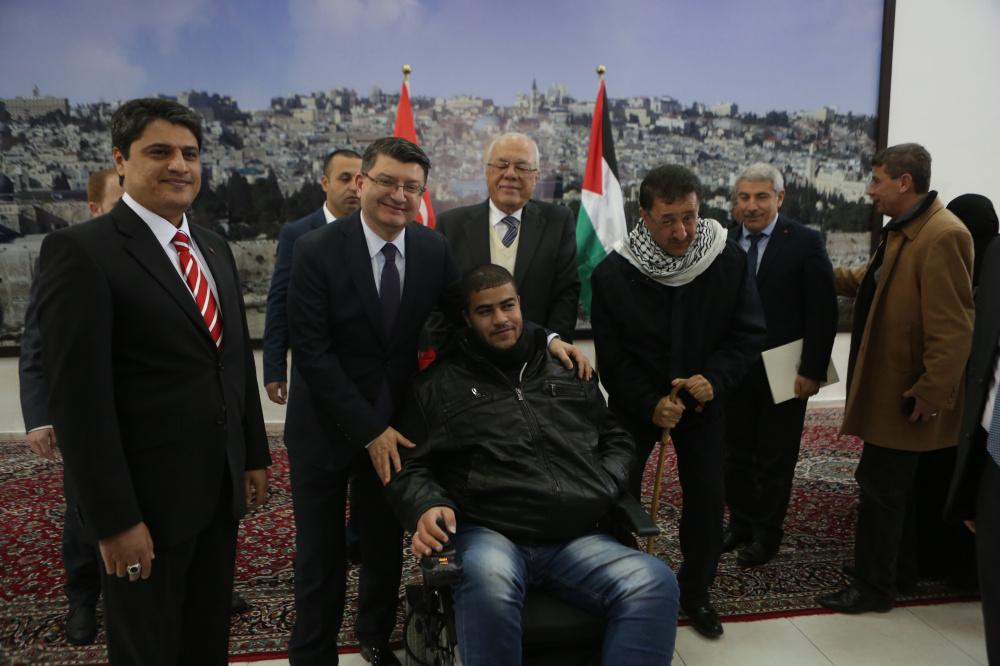 بحضور الرئيس مؤسسة التعاون والتنسيق التركي (تيكا) تسلم 50 فلسطينيا من ذوي الاحتياجات الخاصة كراسي كهربائية