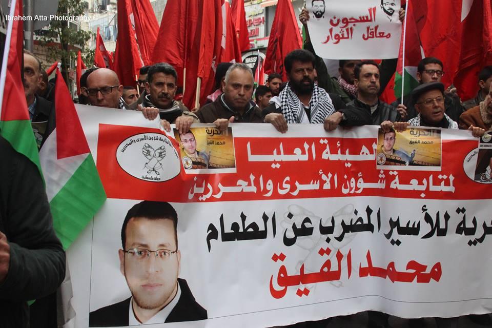 مسيرة جابت شوارع رام الله تضامن مع الأسير محمد القيق اليوم
