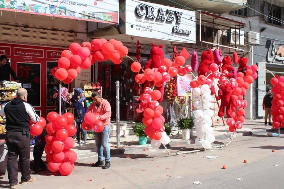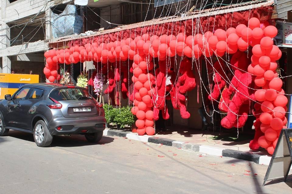 في "يوم الحب" غزة تكتسي باللون الأحمر