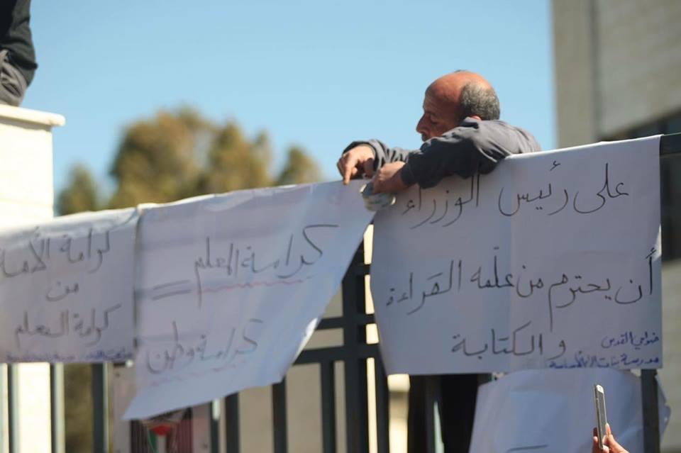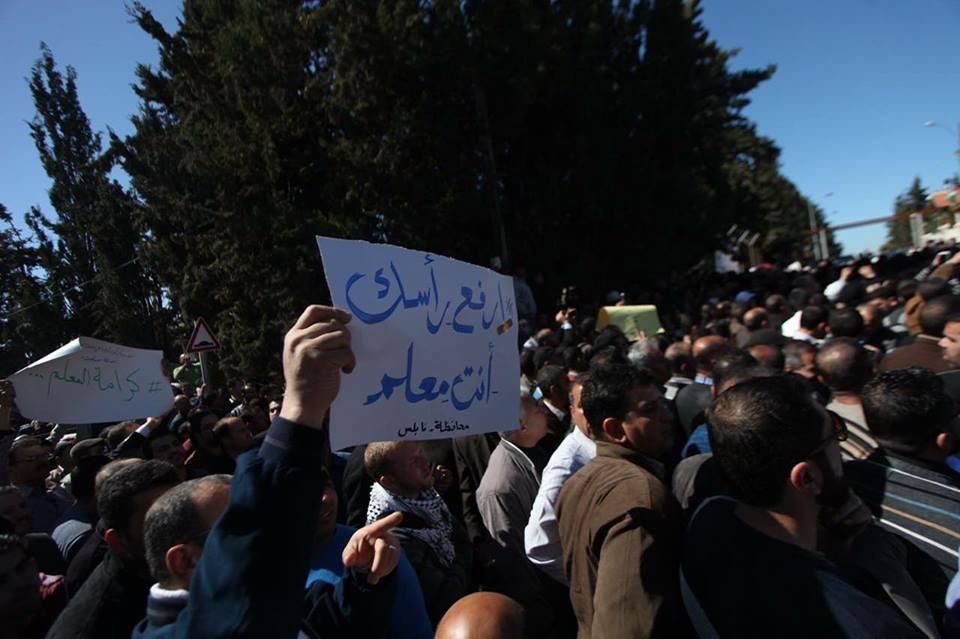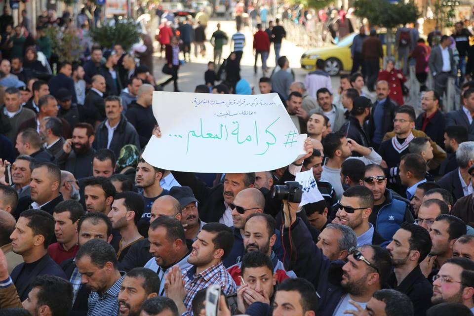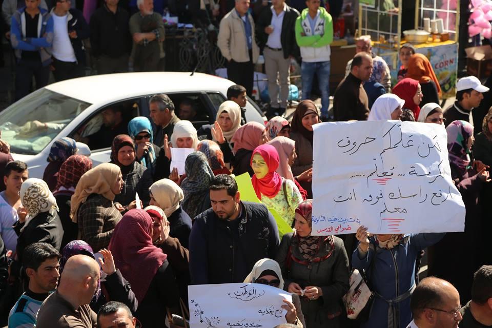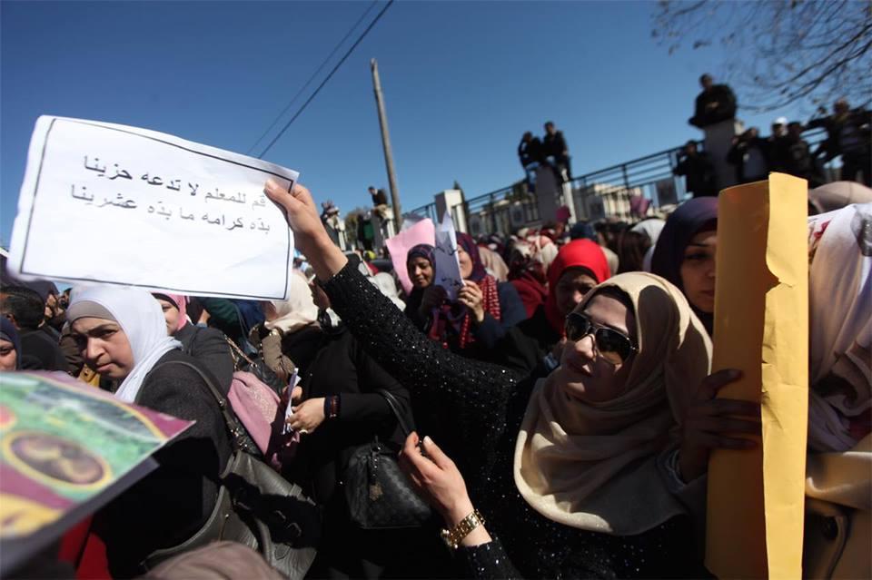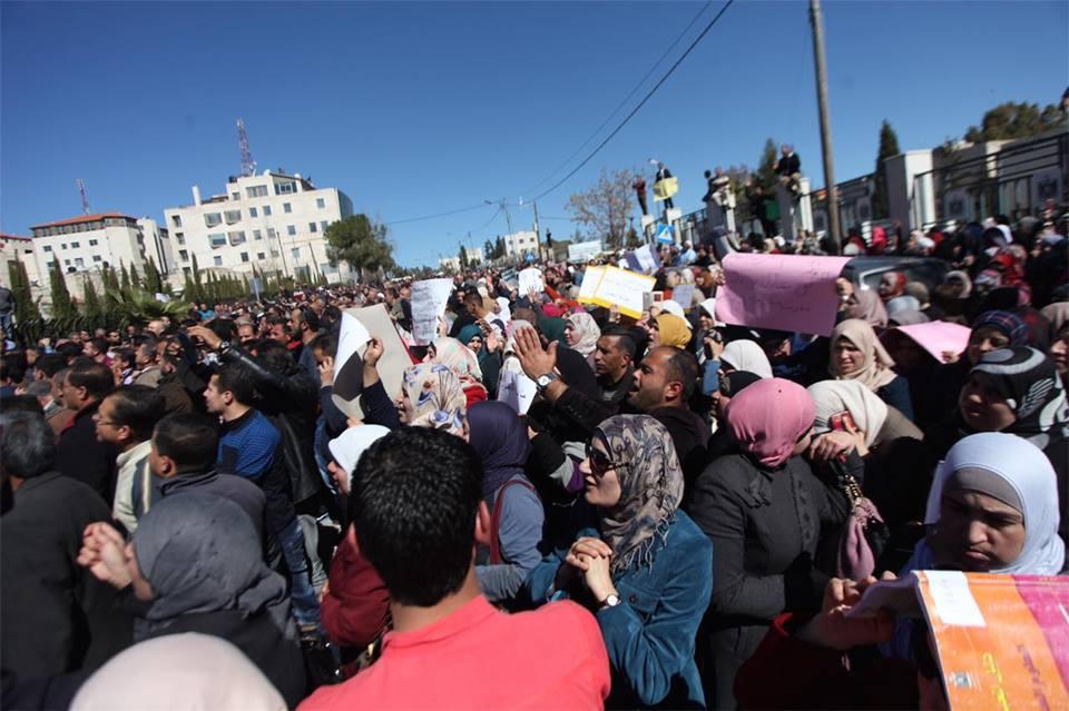 آلاف المعلمين يتعصمون أمام مقر مجلس الوزراء برام الله