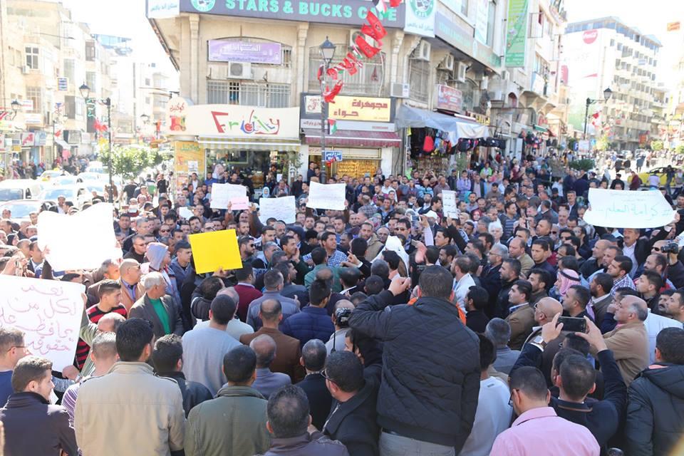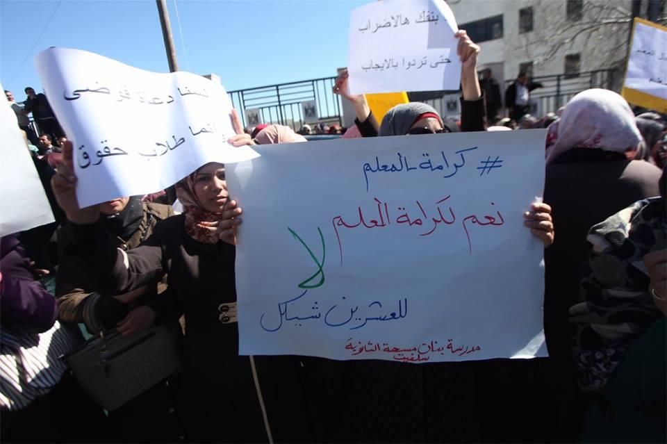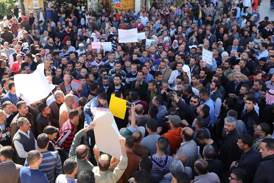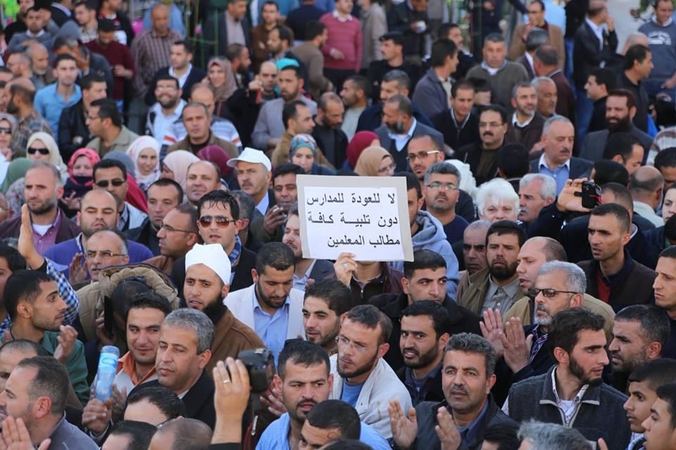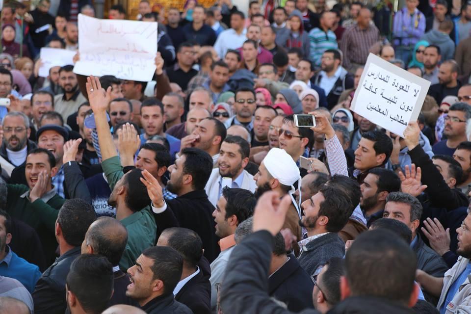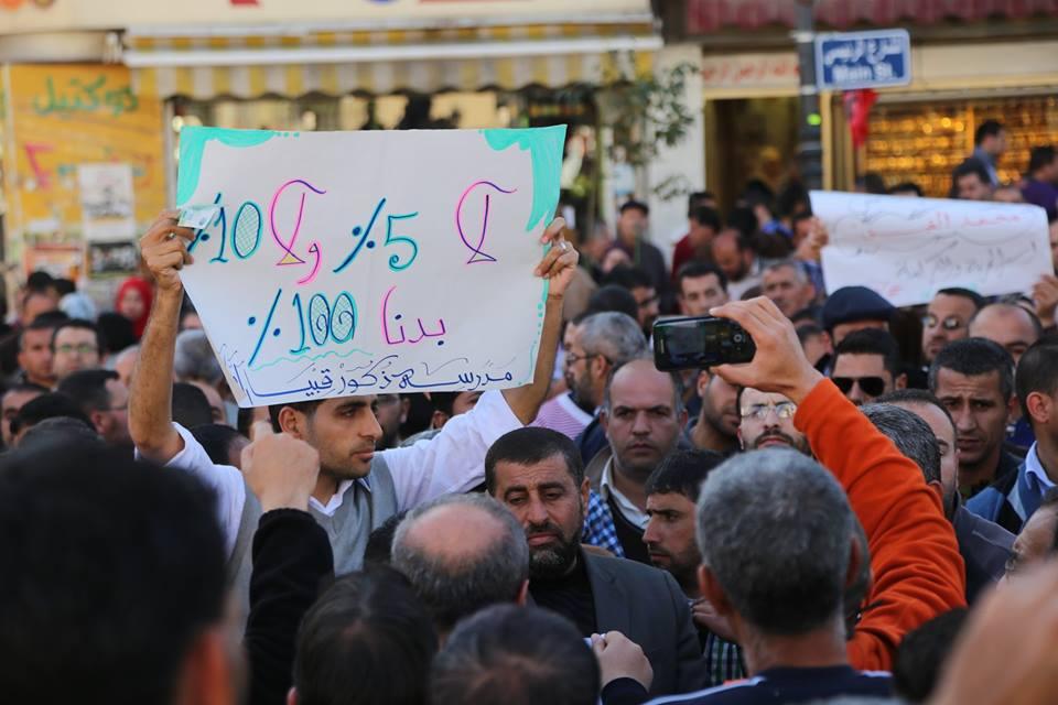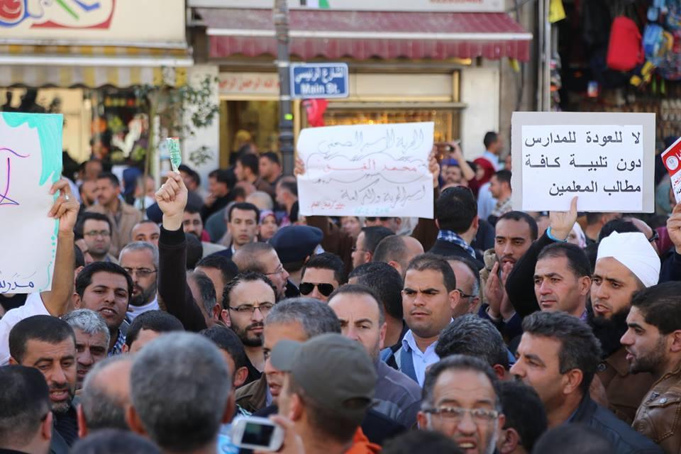 آلاف المعلمين يتعصمون أمام مقر مجلس الوزراء برام الله
