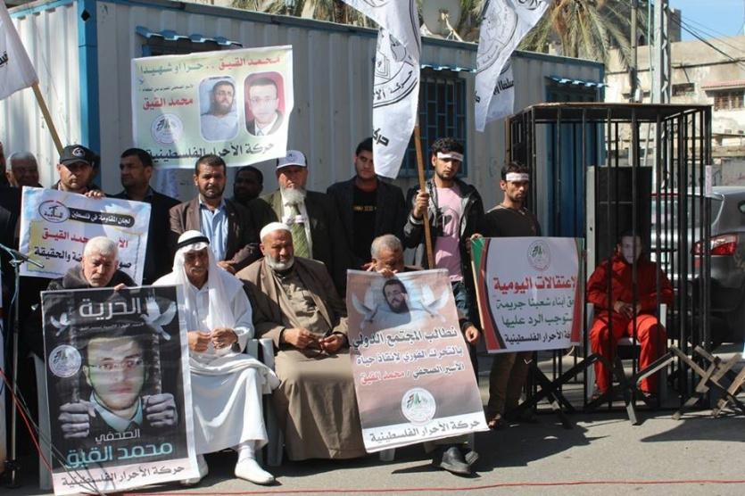 وقفة تضامنية بغزة مع الاسير الصحفي محمد القيق