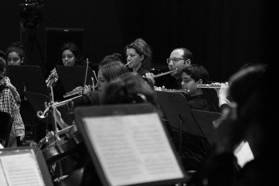 عرض الأوركسترا الوطنية الفلسطينية وأوركسترا المعهد الوطني للموسيقى في جامعة النجاح
