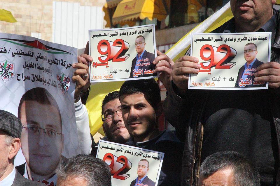 الخليل: وقفة تضامنية مع الصحفي القيق المضرب منذ 92 يوما