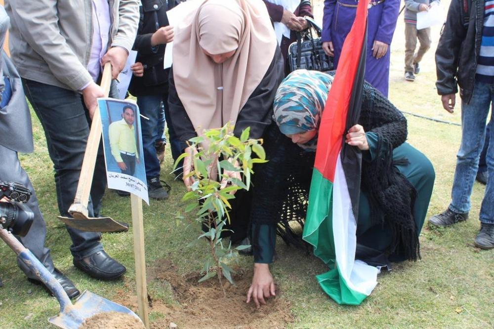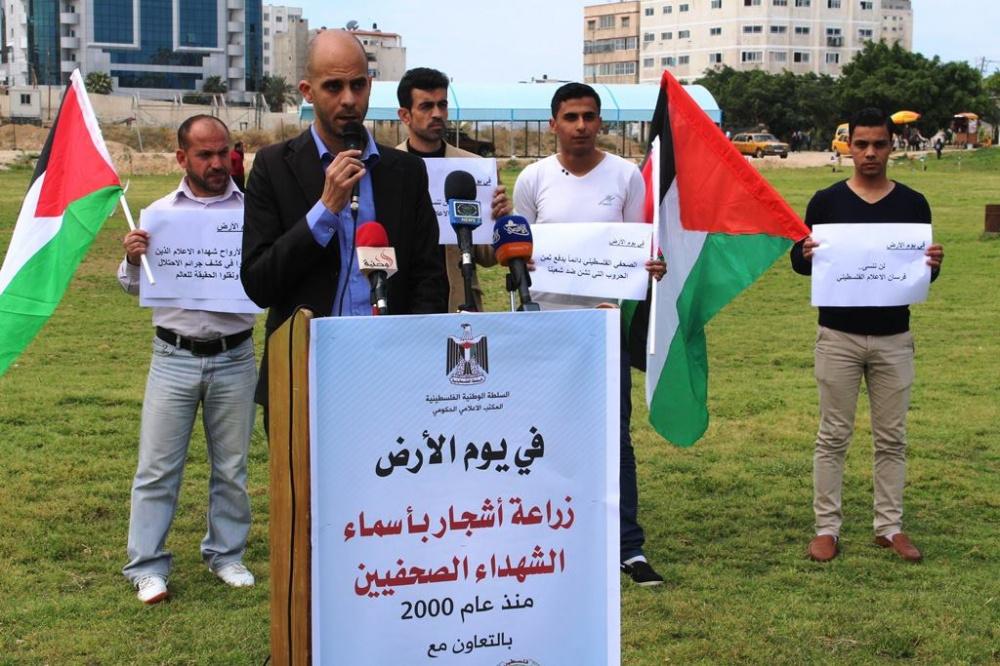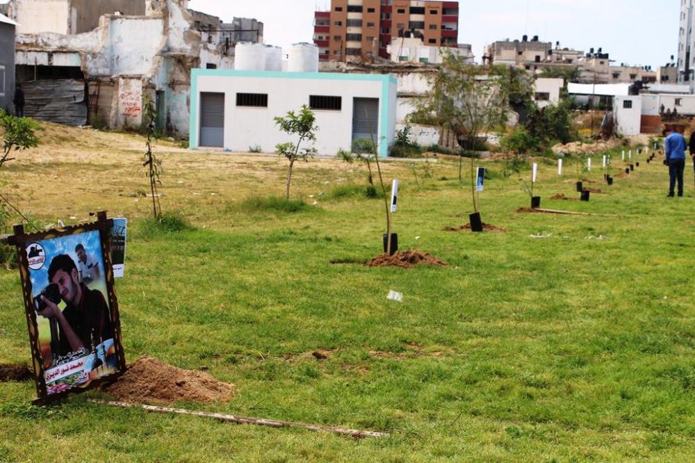 قام أهالي الشهداء الصحفيين بالتعاون مع وزارة الاعلام بغزة اليوم الأربعاء، بزراعة أشجار بأسماء الشهداء الصحفيين "لكل شهيد شجرة وفاء" على أرض السرايا وسط مدينة غزة، للتأكيد على أن دماء الصحفيين ستبقى شاهدة على الحق الفلسطيني في يوم الأرض، حيث تم زراعة 42 شجرة بأسماء الشهداء الصحفيين منذ عام 2000.