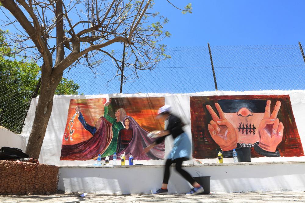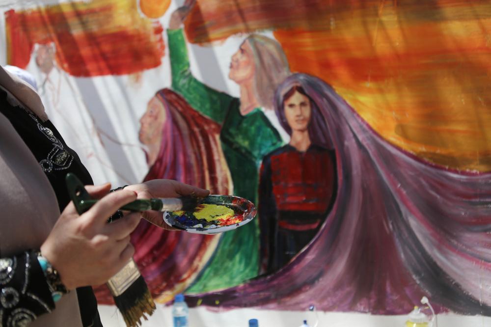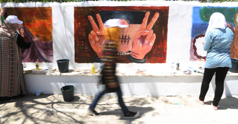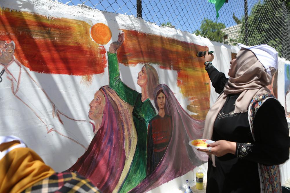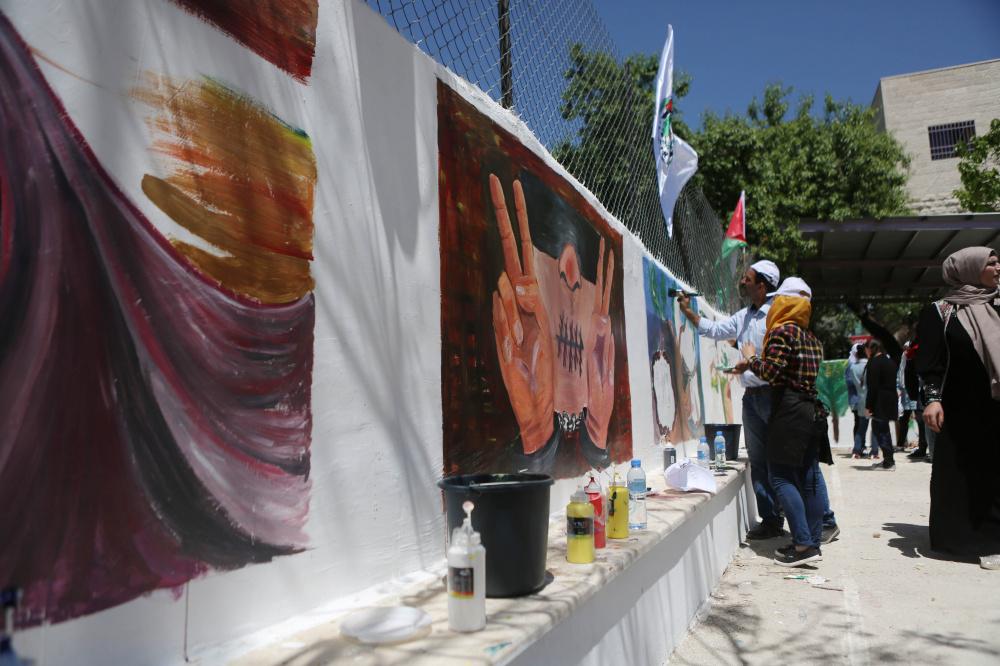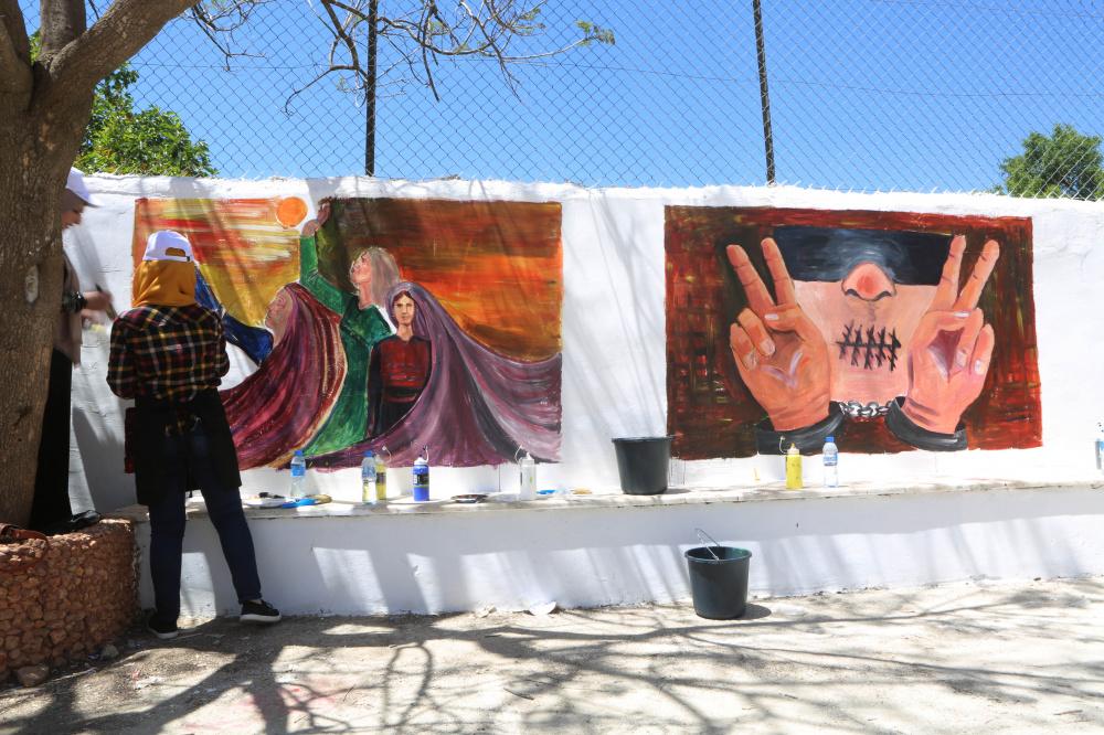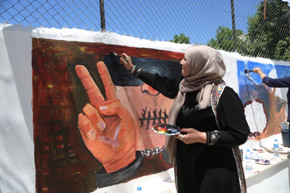 رسم جدارية الحرية في مدرسة بنات الازور في البيرة