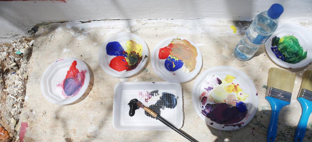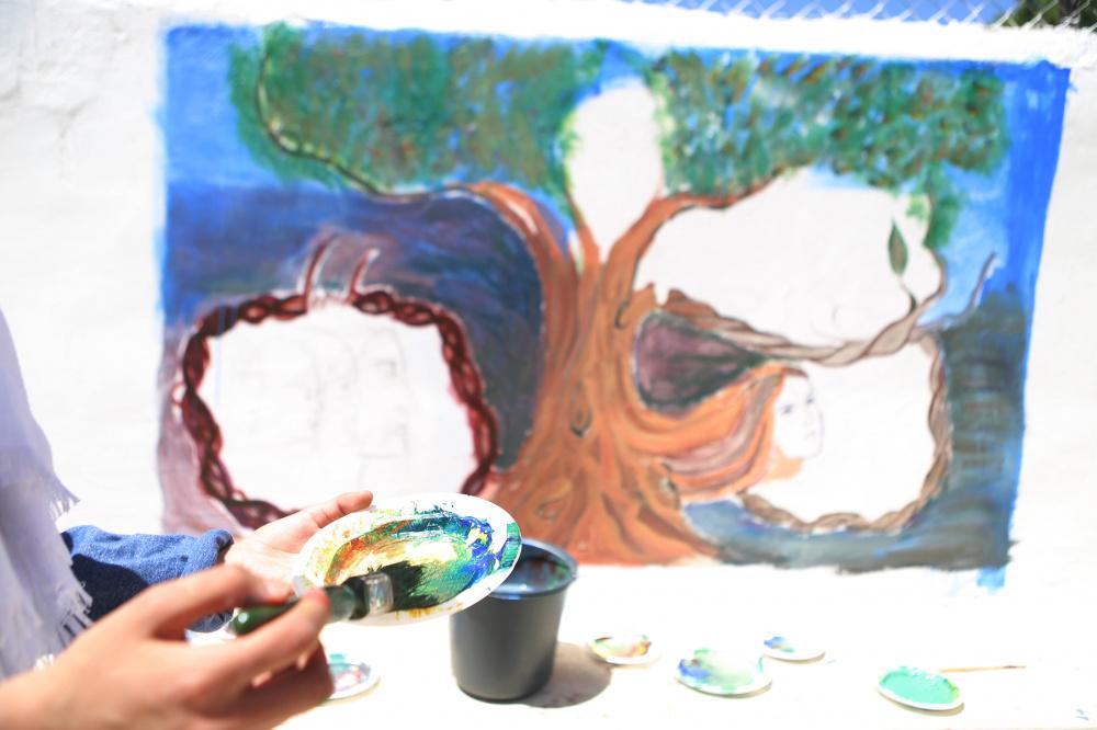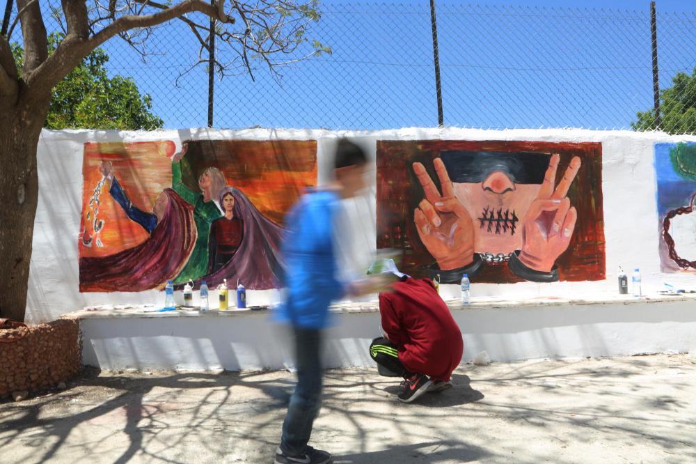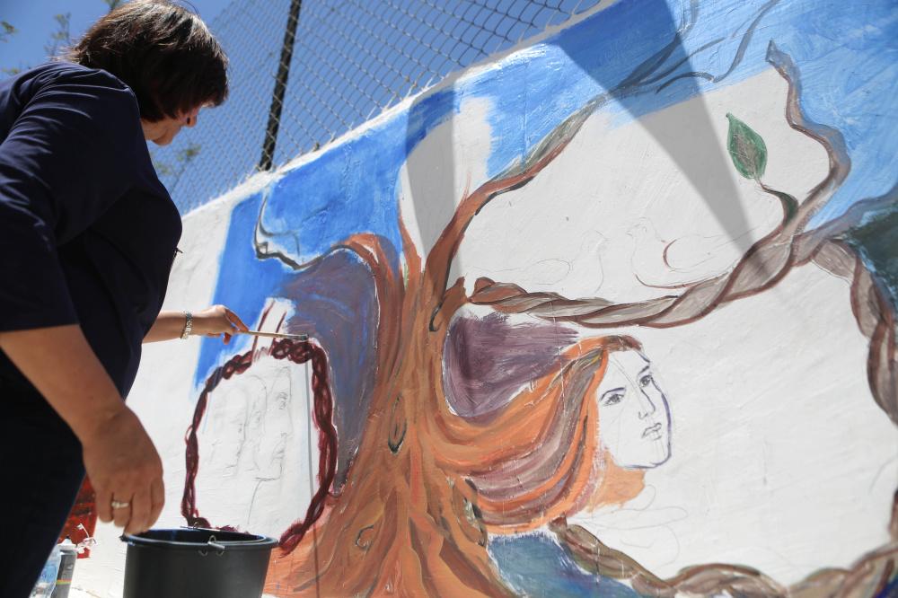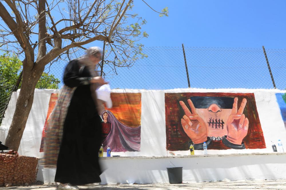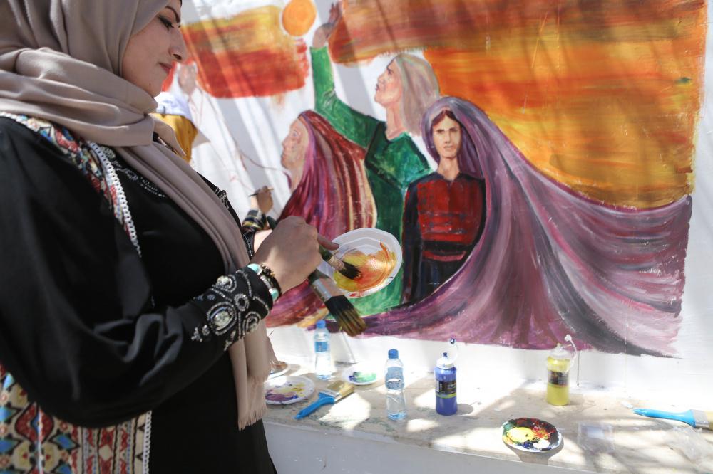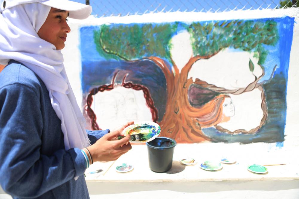رسم جدارية الحرية في مدرسة بنات الازور في البيرة