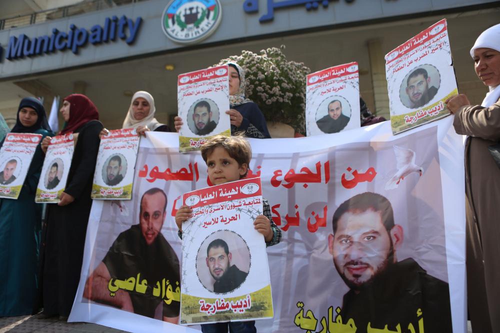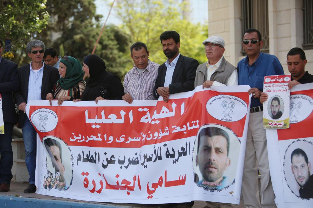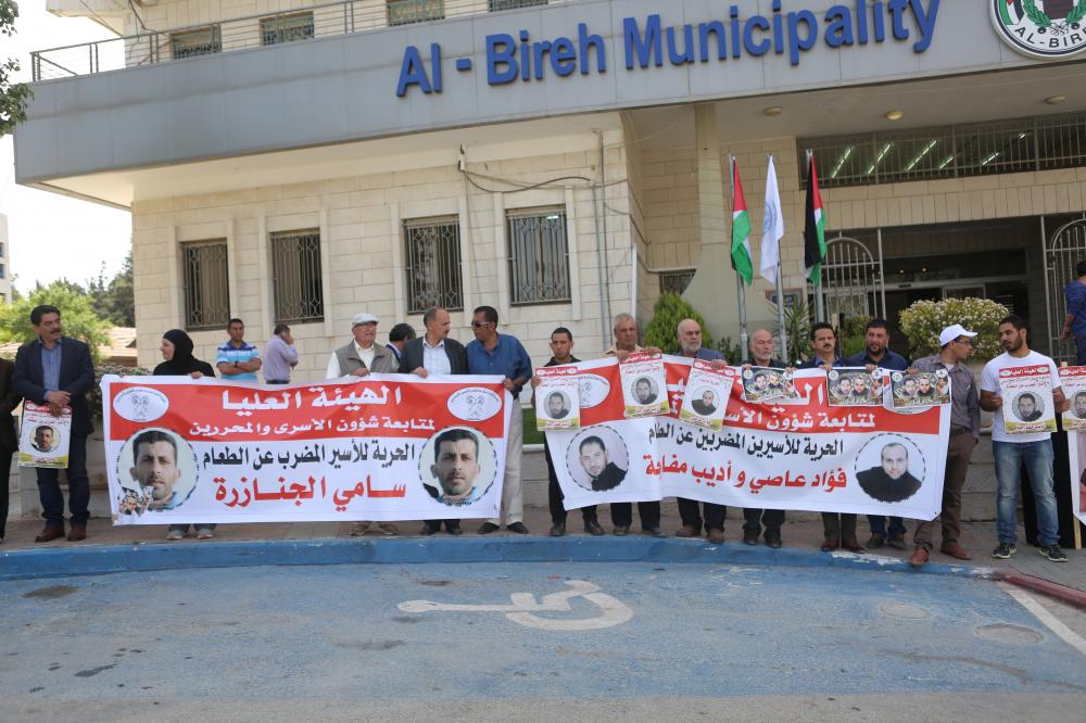 وقفة تضمامنية مع الاسرى المضربين عن الطعام امام بلدية البيرة