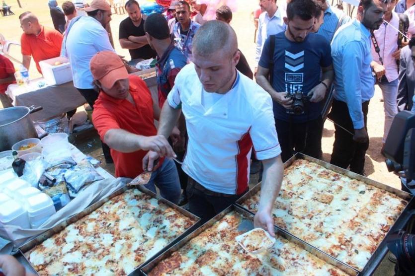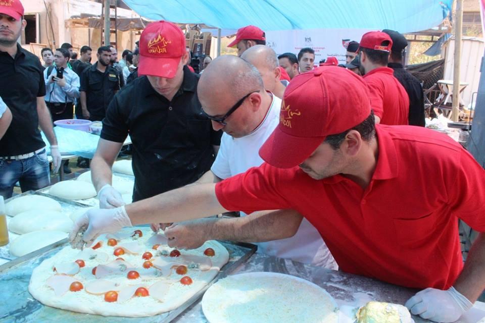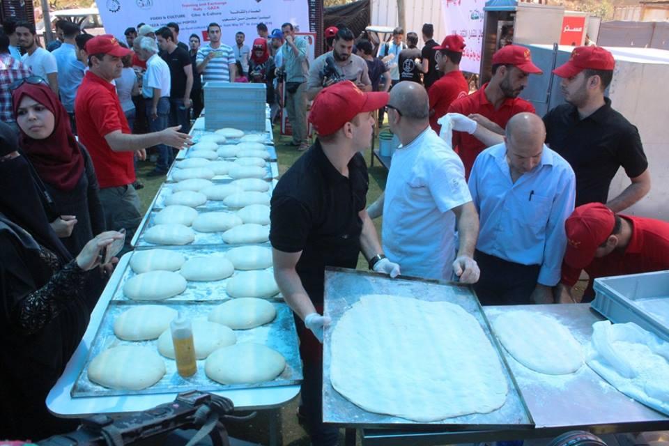 فريق ايطالي يصنع البيتزا الايطالية للمارة بغزة مجاناً