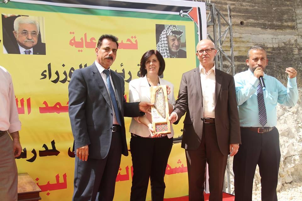الصور: الحمد الله يضع حجر الأساس لمدرسة الشهداء في قرية بيت وزن- نابلس