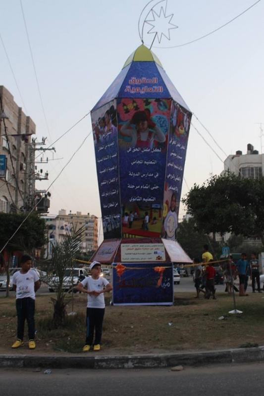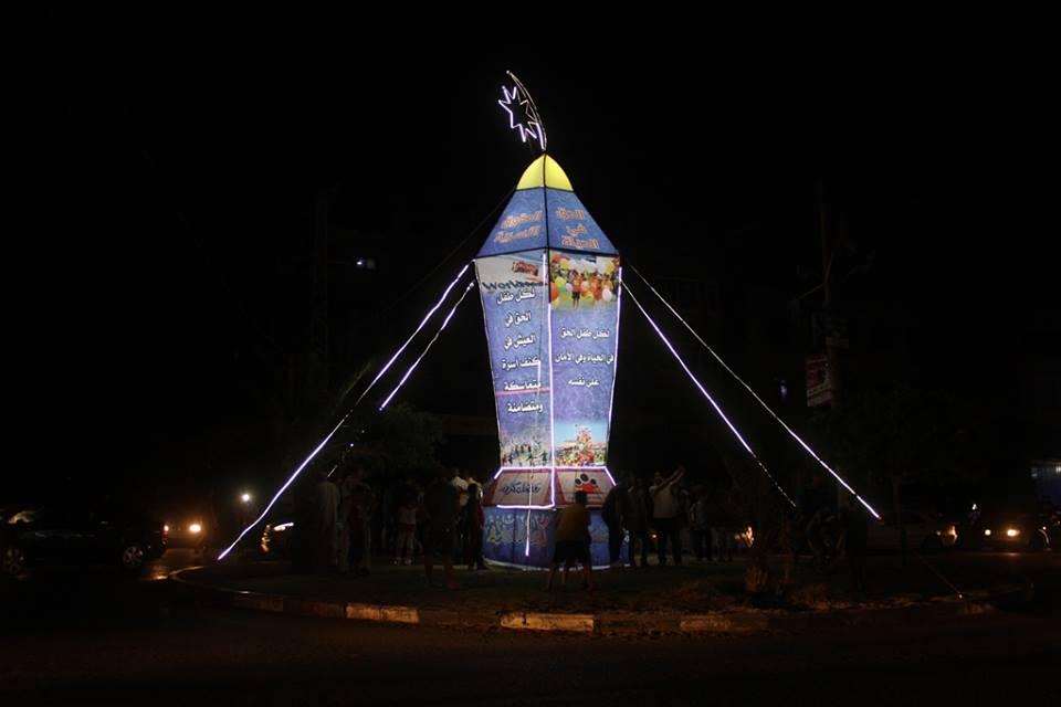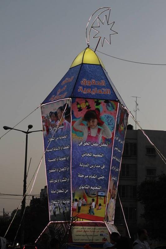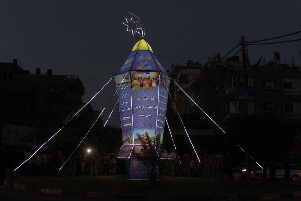 غزة - راية تصوير: سامح أبو دية أنار مركز رعاية الفئات الخاصة بغزة بتمويل من الرؤية العالمية مساء اليوم الأحد، أكبر فانوس في قطاع غزة يُعبر عن حقوق الطفل، حيث تم اضائة فانوس رمضان الضخم على مفترق الصفطاوي الذي يربط شمال قطاع غزة بمدينة غزة،