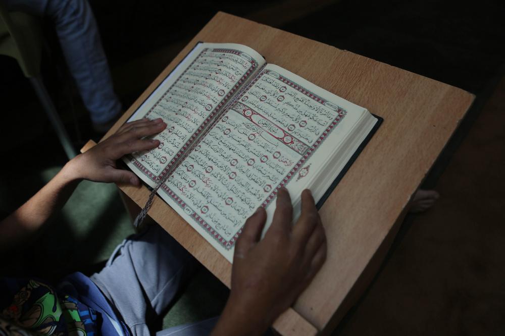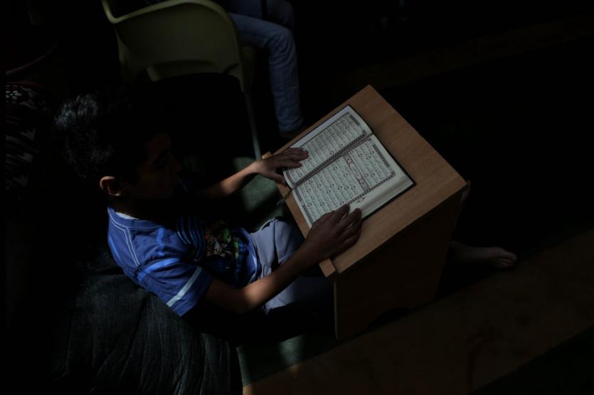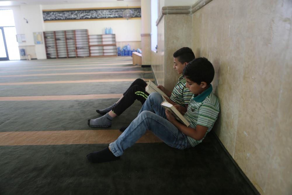 اطفال يقرأون القرآن في مسجد تميم الداري في رام الله