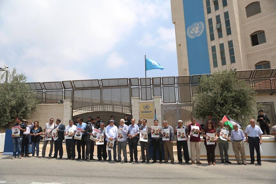 وقفة تضامنية مع الاسير الصحفي عمر نزال وبلال كايد امام مقر الامم المتحدة في رام الله