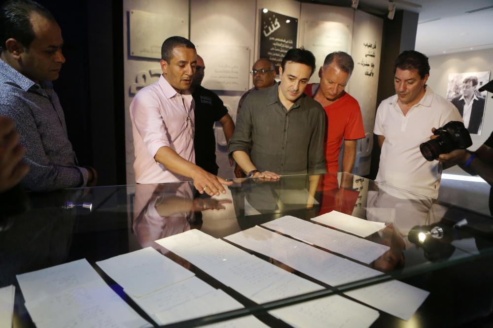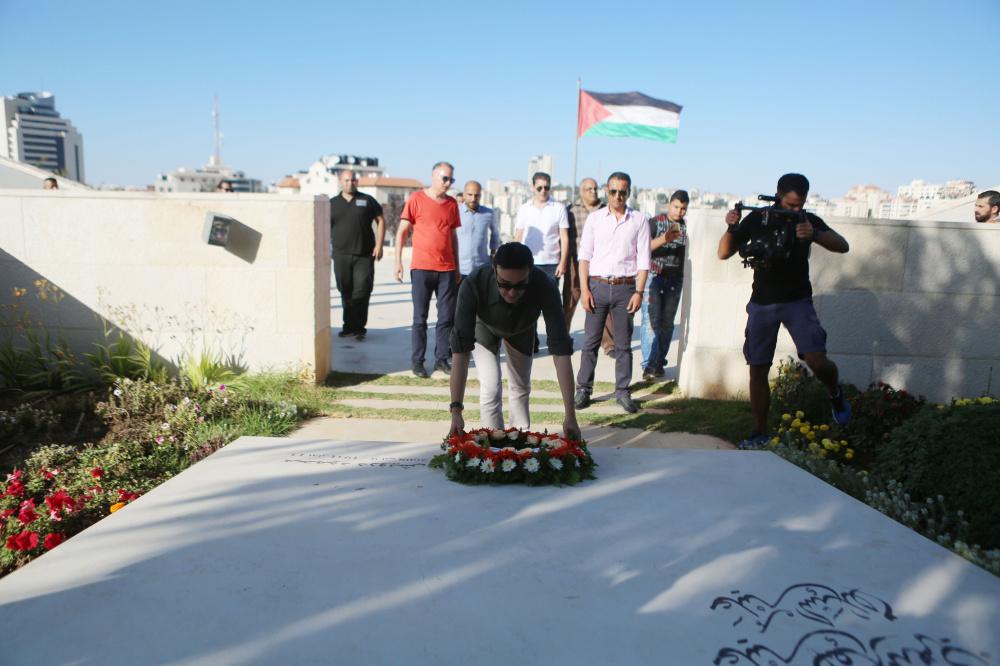 الفنان صابر الرباعي يضع إكليلا من الزهور على قبر محمود درويش