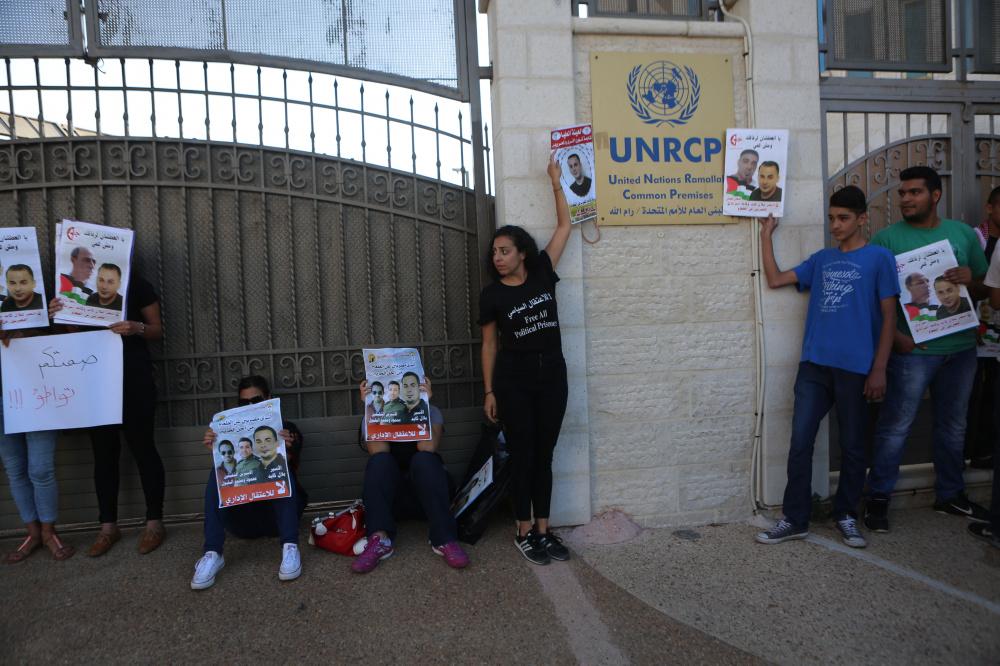 نشطاء يغلقون مقر الأمم المتحدة برام الله تضامنًا مع الأسير بلال كايد 2