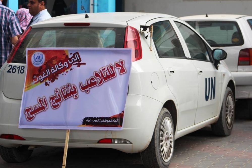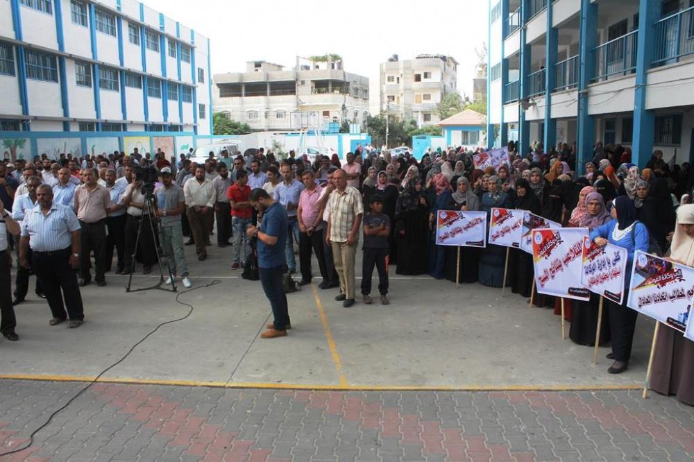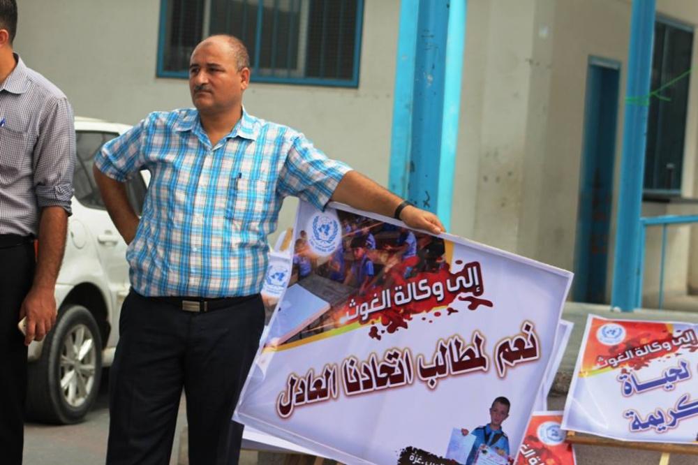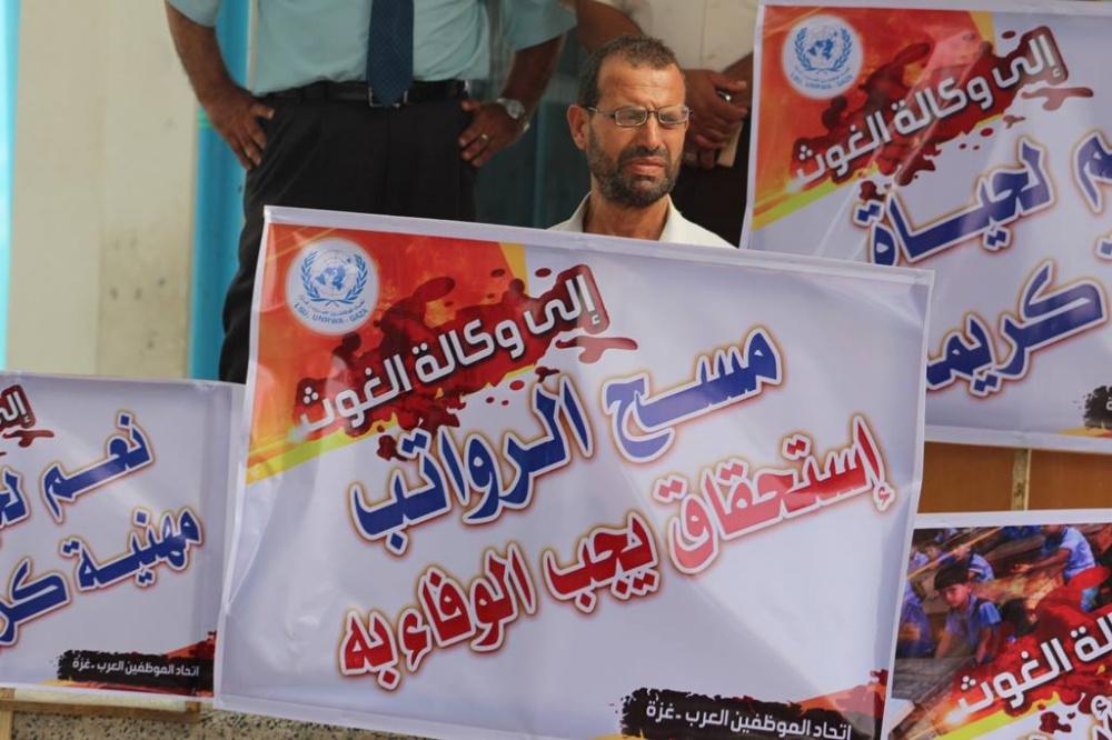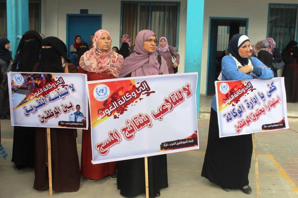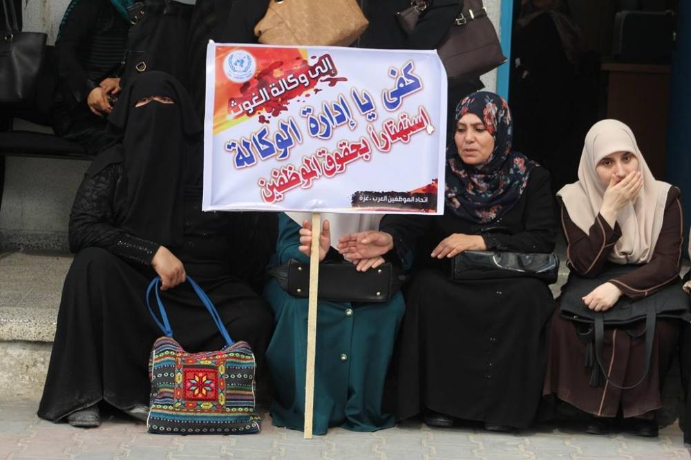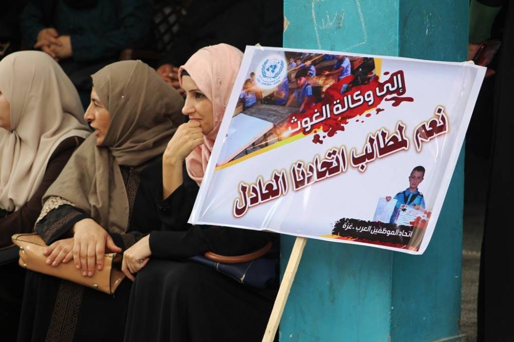 احتجاج كبير لموظفي "أونروا" شمال غزة رفضاً لتقليصاتها
