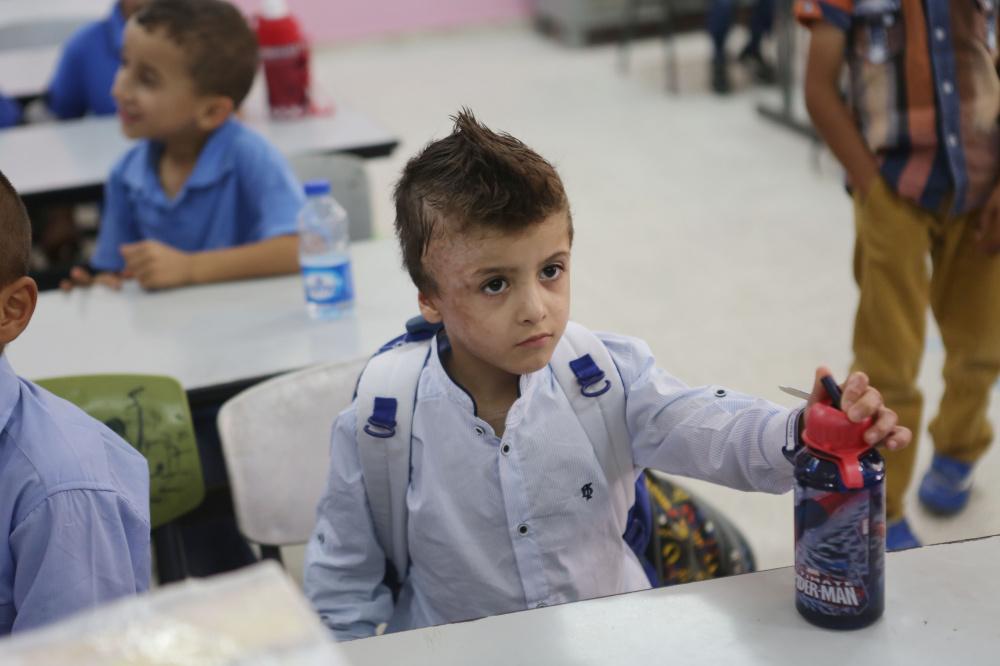 الطفل أحمد دوابشة في أول أيام الدراسة، وهو الناجي الوحيد من المحرقة التي استهدفت عائلته من قبل المستوطنين