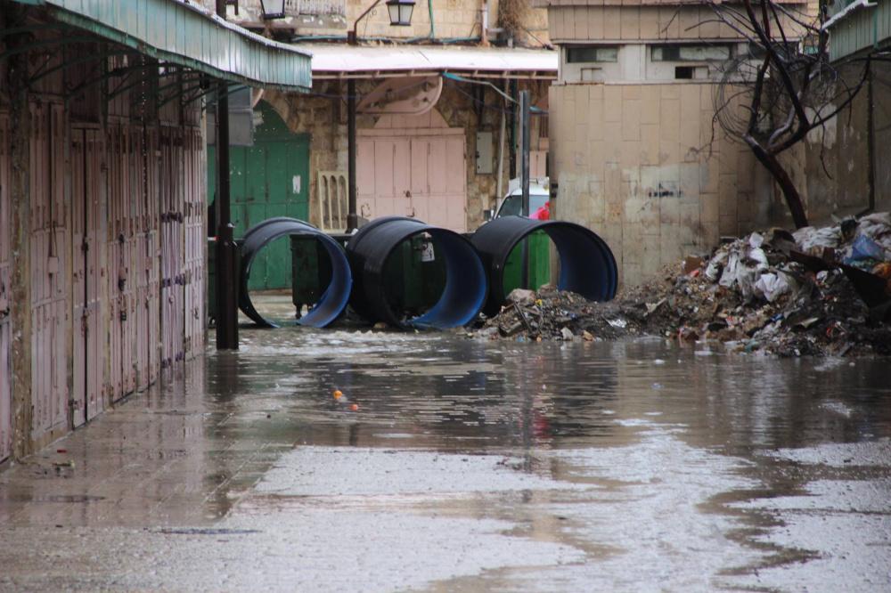 بعد المياه العادمة، مياه الامطار تغرق البلدة القديمة في الخليل.