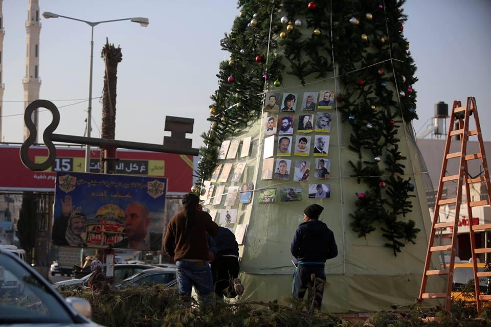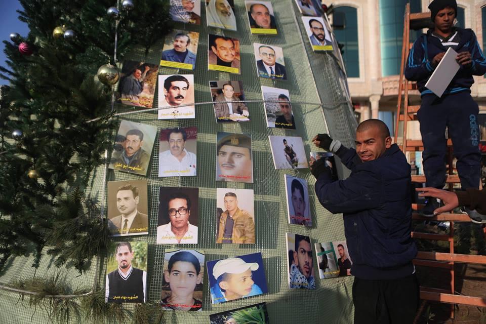 شجرة الميلاد بالعيزرية.. بصور الشهداء