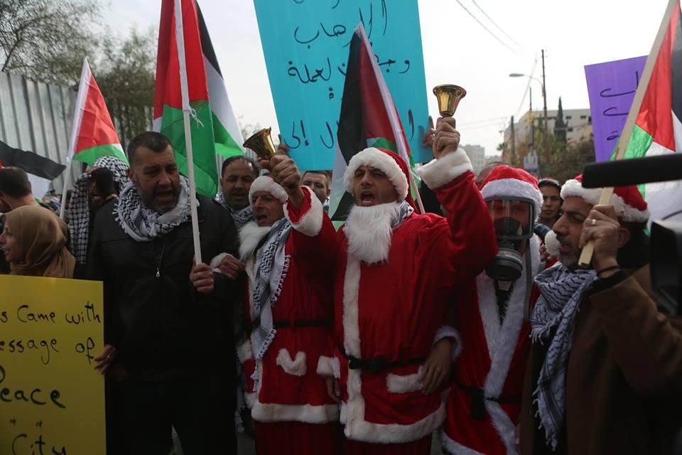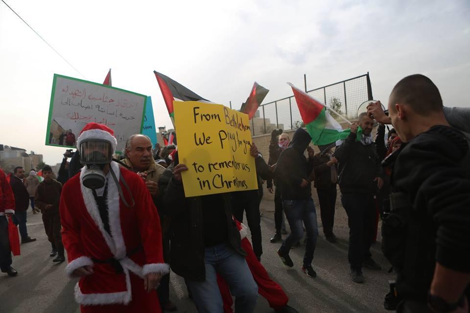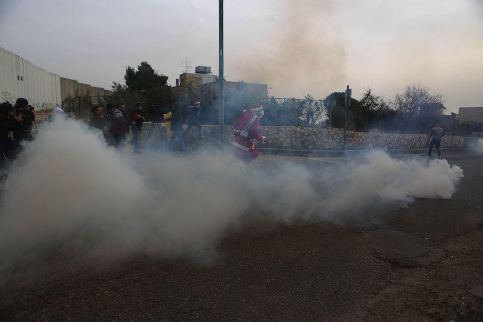 قوات الاحتلال تقمع بالرصاص والغاز مسيرة لـ"سانتا كلوز" في بيت لحم