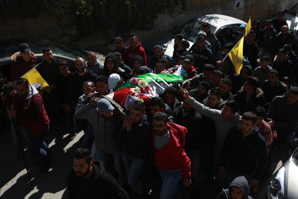 تشييع جثمان الشهيد حسين ابو غوش في مخيم قلنديا